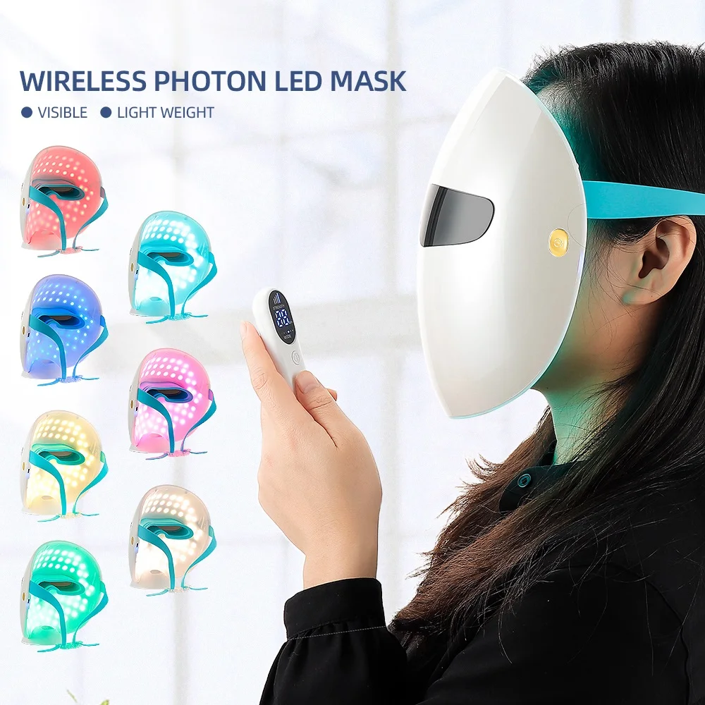 무선 7 색 LED 페이셜 마스크 광자 치료 피부 회춘 브라이트닝 안티 링클 에이스 트리트먼트 페이스 Beatuy SPA 마스크