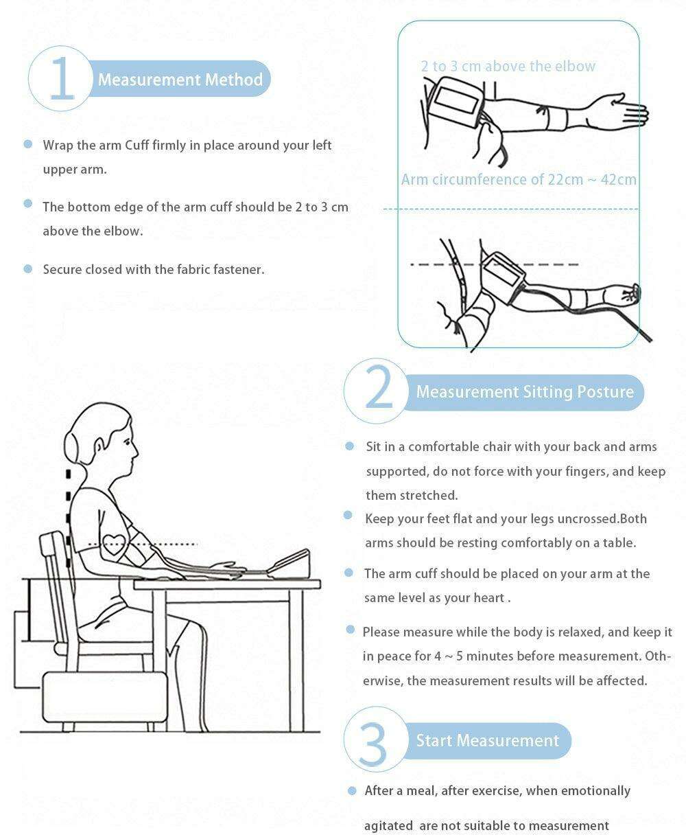 AICARE 혈압 모니터로 건강을 유지하십시오. 이 장치는 비침습적 오실로메트릭 기술을 사용하여 12세 이상의 사람들의 이완기 및 수축기 혈압과 맥박수를 측정합니다. 22cm~42cm 범위의 단일 상완 커프가 있는 이 모니터는 가정용으로 적합합니다. 커프는 내구성이 뛰어난 나일론 폴리에스테르 소재로 제작되었으며 AAA 배터리 4개(포함되지 않음) 또는 DC 5V 500mA 충전기 및 케이블(포함되지 않음)로 전원을 공급할 수 있습니다. 이 장치는 편의를 위해 디지털 LCD 디스플레이와 자동 전원 끄기 기능을 갖추고 있습니다. CE 인증 및 50개 이상의 국가에서 무료 판매 인증서가 있는 이 제품은 혈압을 정확하고 쉽게 모니터링하는 데 도움이 됩니다.