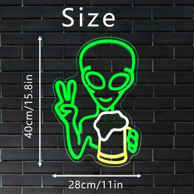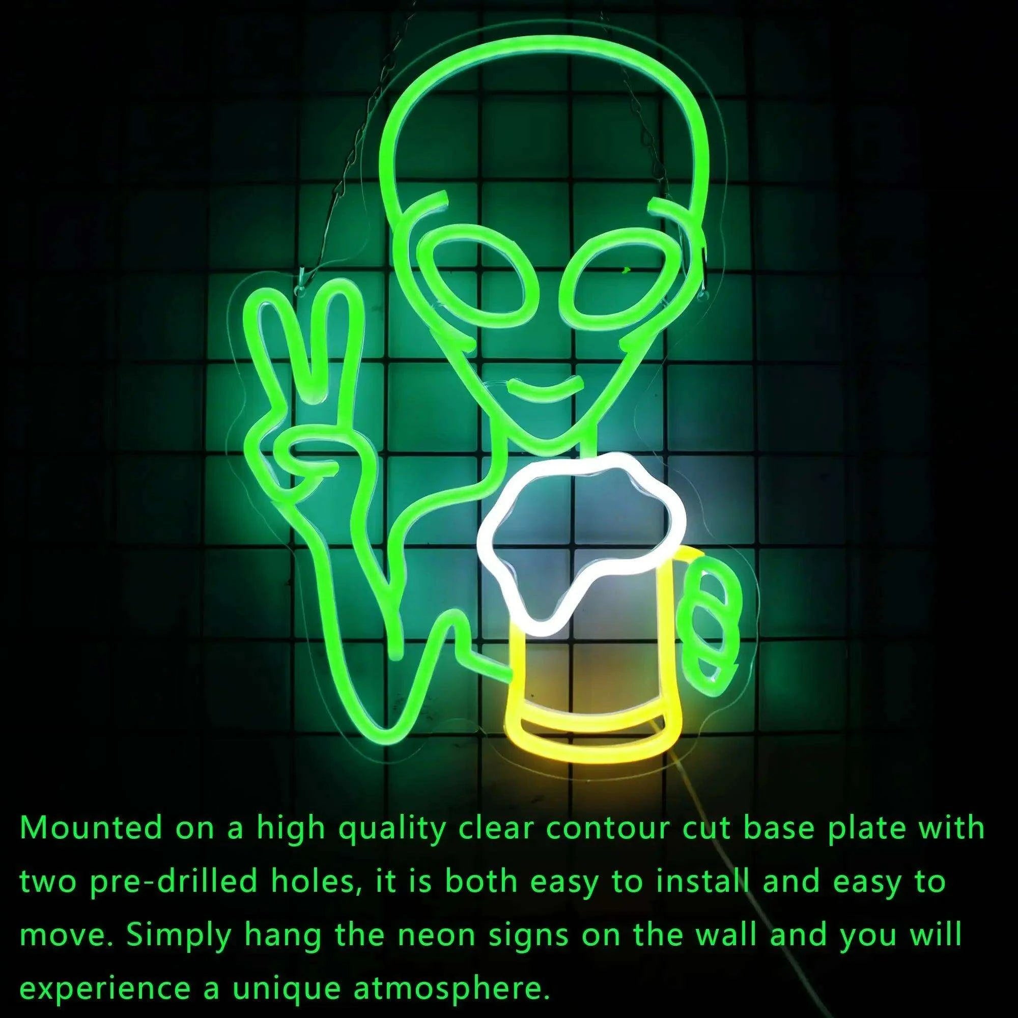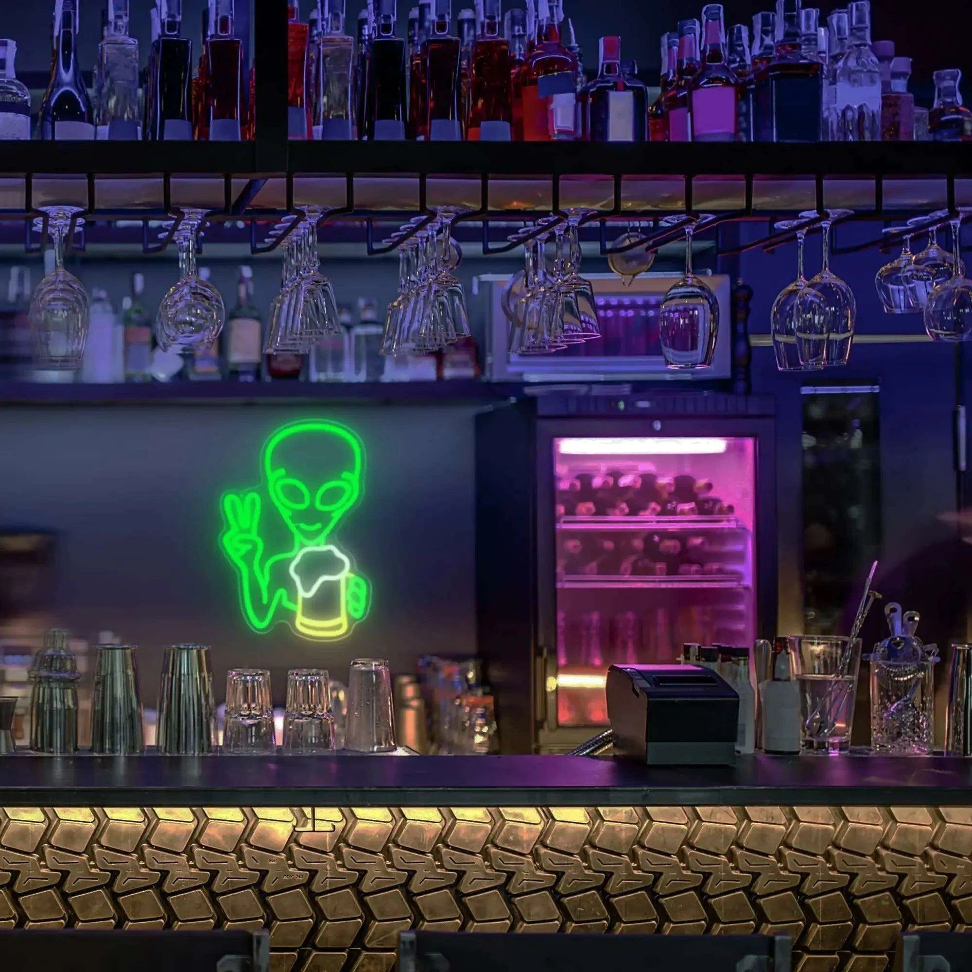 • Vibrant Design: Featuring a bold alien enjoying a cold beer, this neon sign is designed to grab attention and inspire conversations.