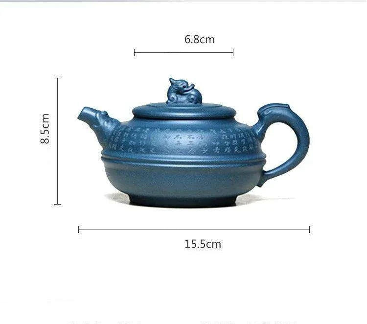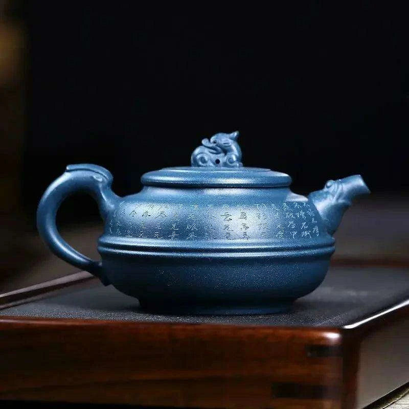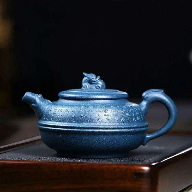 Artisan 340ml Yixing Teapot with Beautiful Blue Accents - Luxury Zisha Tea Set