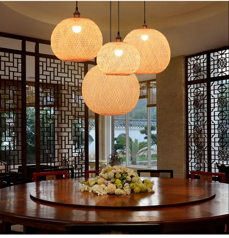 중국 스타일 샹들리에 대나무 짠 교수형 램프 티 룸 랜턴 선 계단 조명 높은 거실 공 미용실 램프