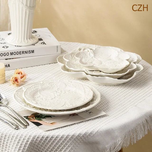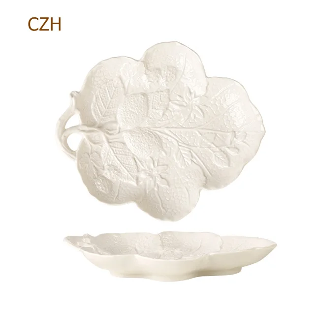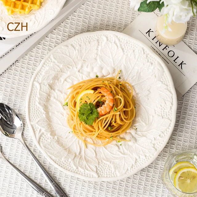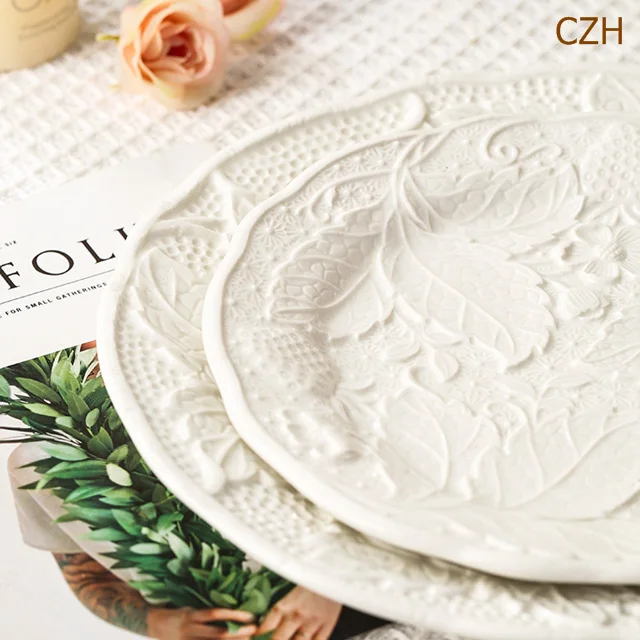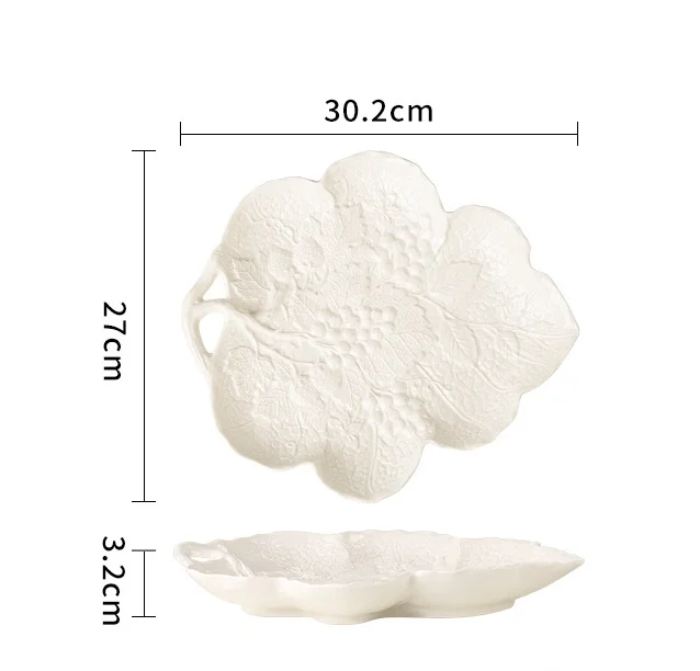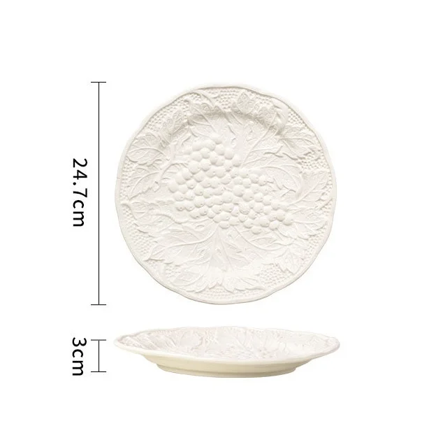 포도 덩굴 양각 세라믹 디너 플레이트 - 마카로니, 리조또, 팬케이크, 소시지 샌드위치용 우아한 식기