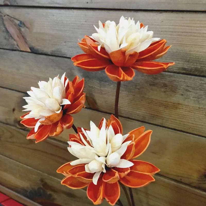 02 오렌지, 레드, 핑크 꽃과 10cm 직경 수제 피는 연꽃의 줄기 세련된 소박한 가정 장식 자연 꽃의 생산