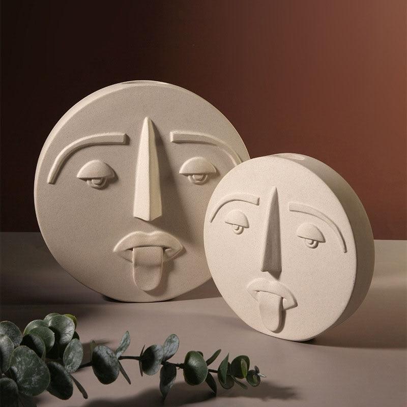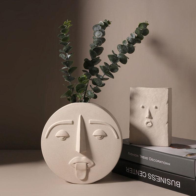 북유럽 스타일 모던 페이스 마스크 세라믹 꽃병 - 탁상용 꽃병