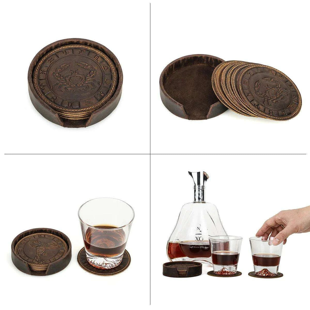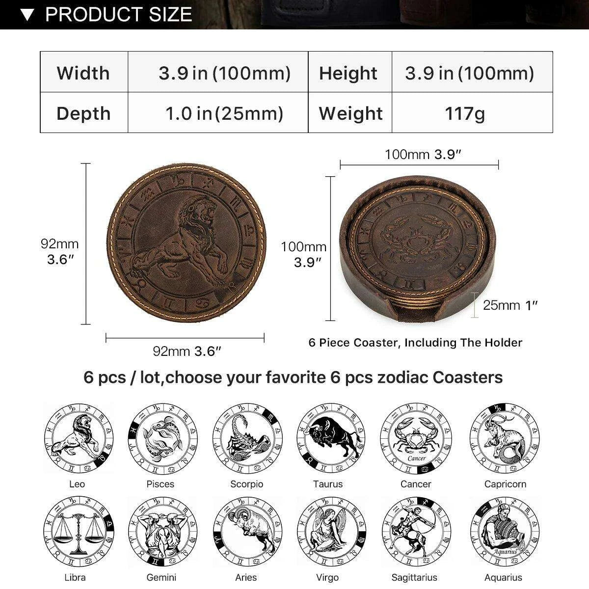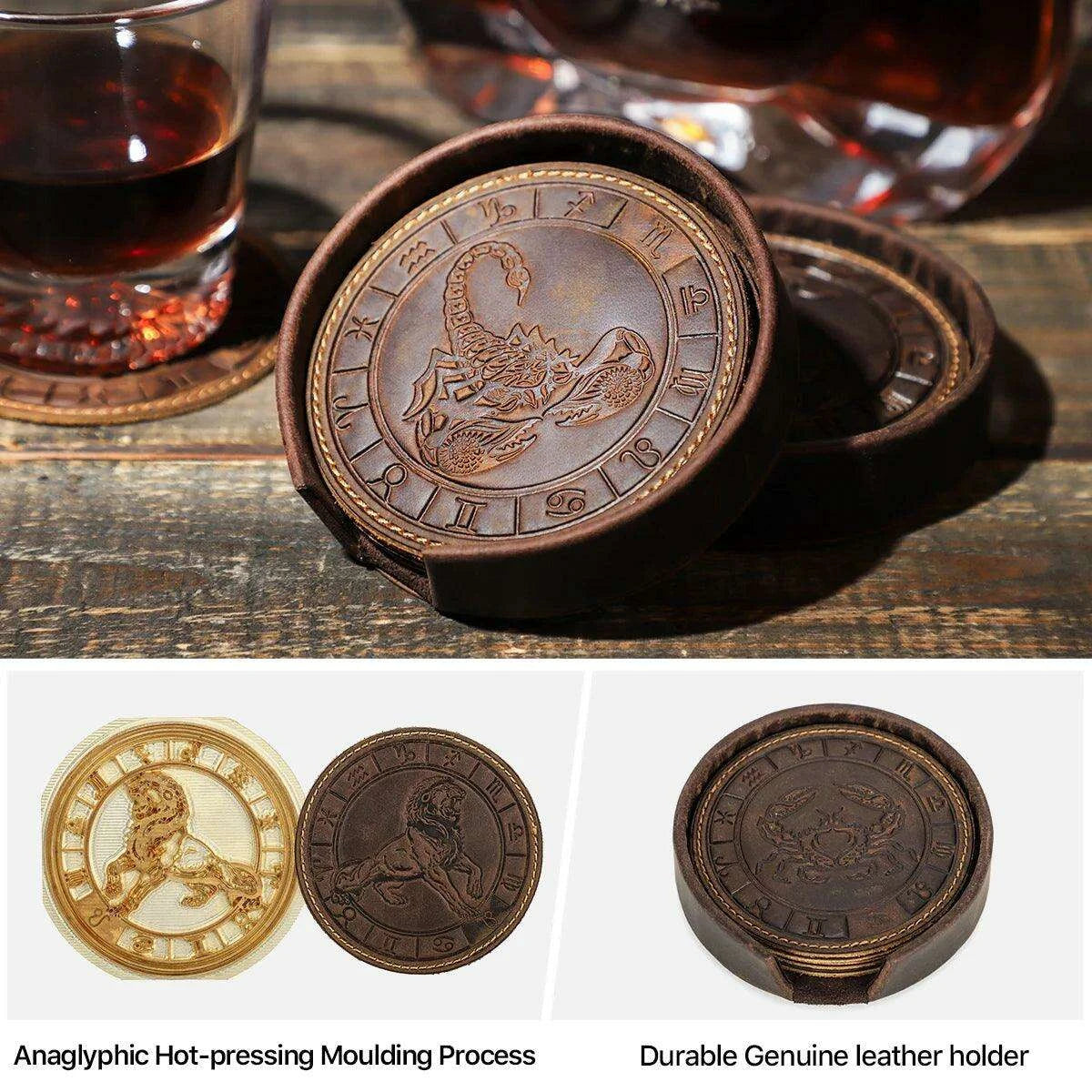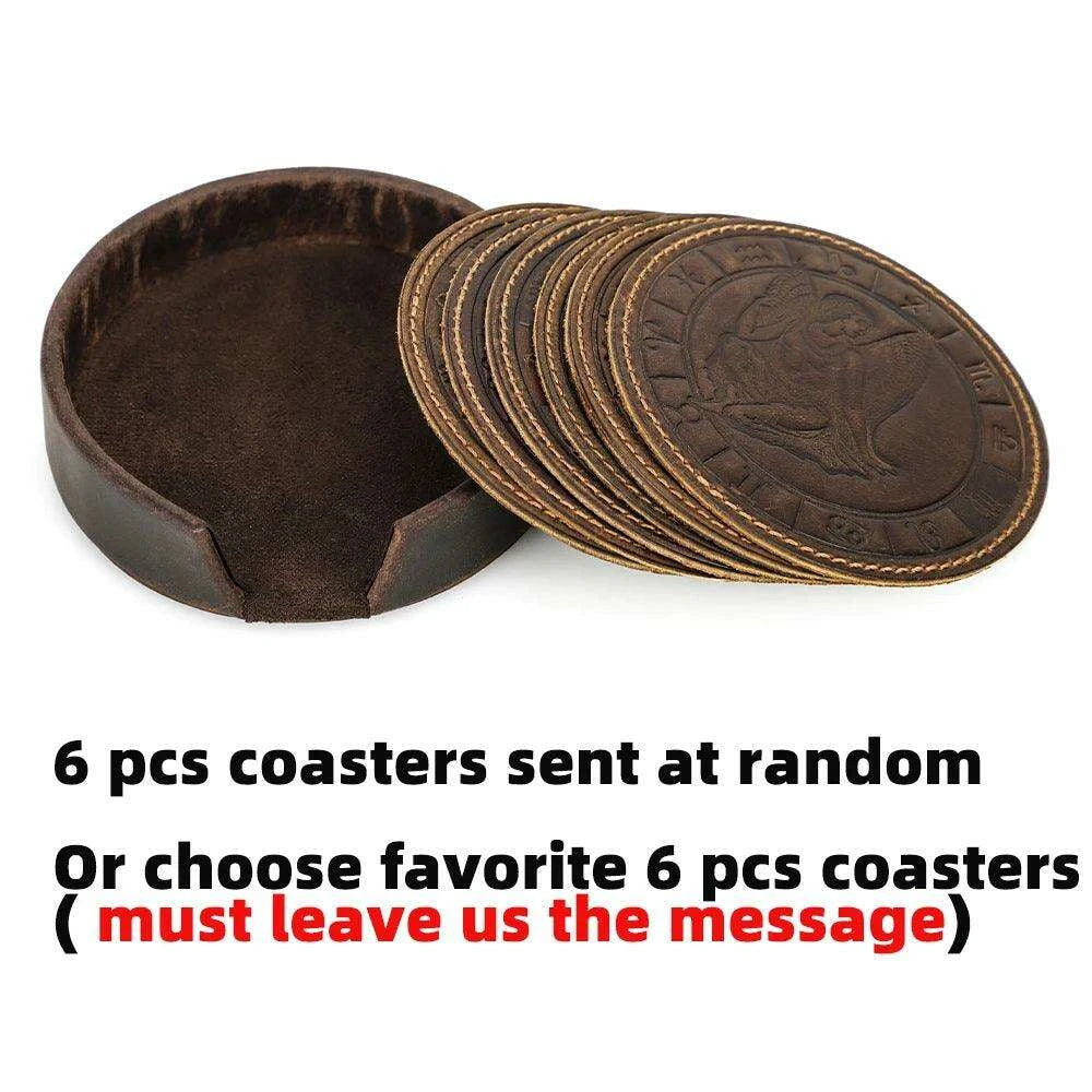 6 개/대 정품 가죽 조디악 엠보싱 음료 컵 받침 커피 머그잔 테이블 컵 매트 패드 절연 매트 유럽 스타일 티 트레이