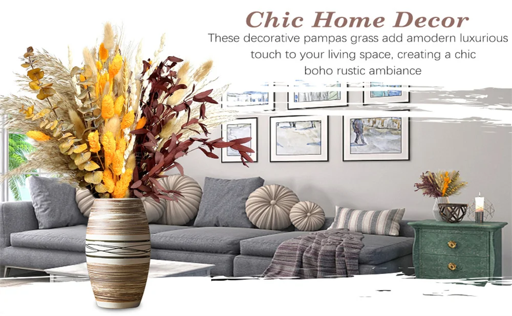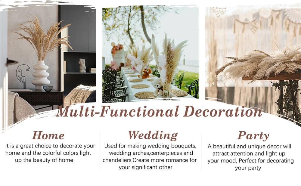우리의 천연 건조 팜파스 그래스 부케는 모든 가정 장식, 결혼식 또는 파티에 독특하고 필수적인 추가품입니다. 오래 지속되는 아름다움과 유지 관리가 필요 없는 특성으로 인해 바쁜 개인에게 완벽하며 가치 있는 꽃다발과 DIY 잠재력은 독특한 배열을 만들 수 있는 무한한 가능성을 제공합니다. 또한 따뜻한 팁과 서비스 보장으로 걱정 없는 쇼핑 경험을 보장합니다.