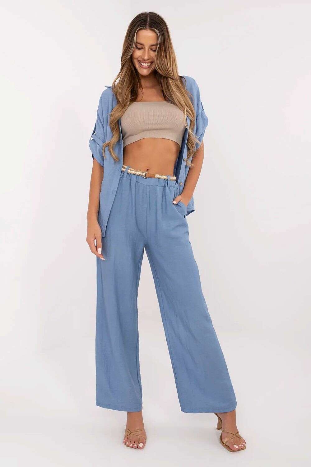 Blue Boho Wide Leg Trousers Women High Waist 214062
