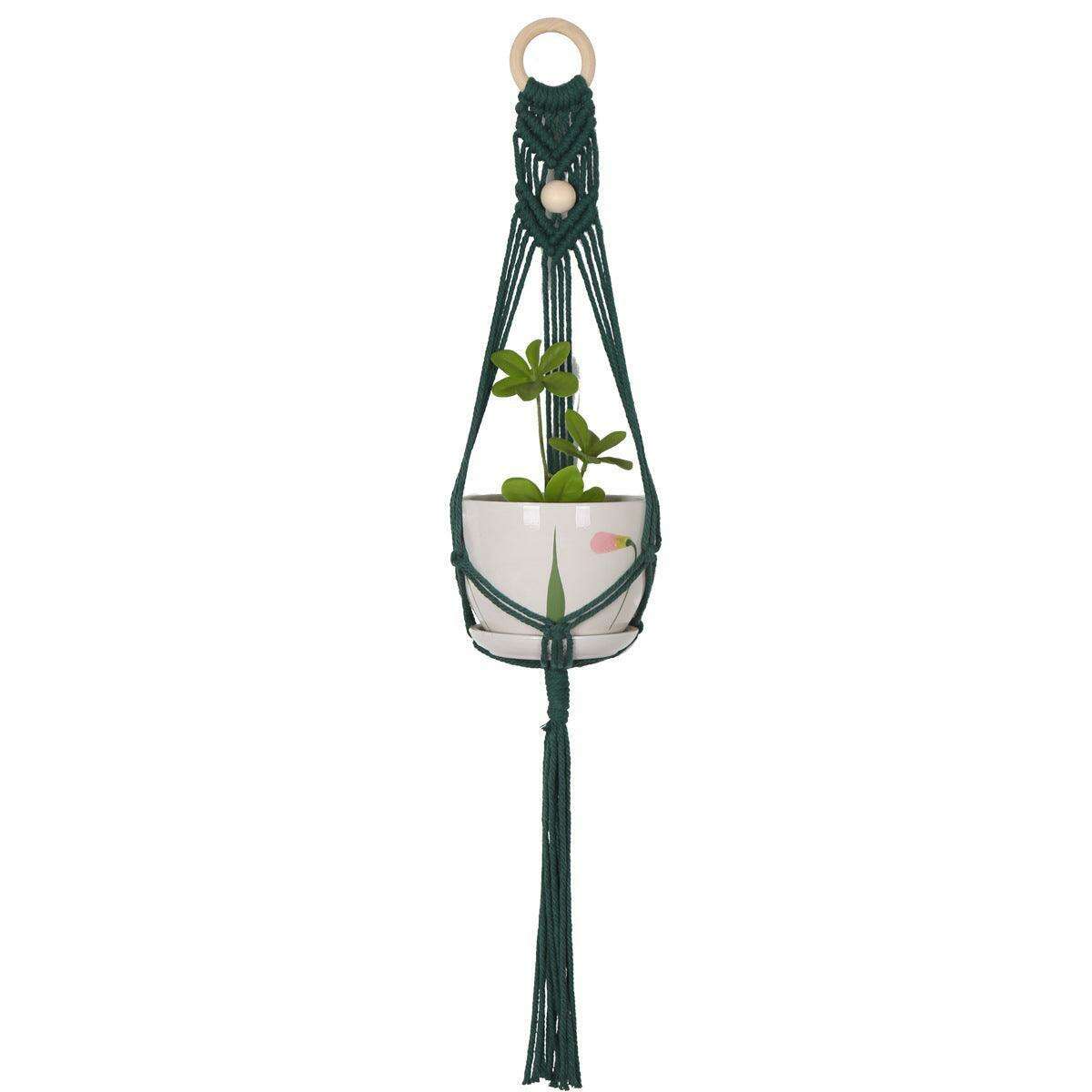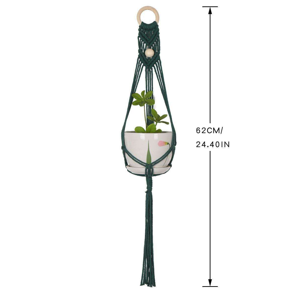 Boho-Chic Green Macrame Wall Plant Hanger with Iron Ring - Elevate Your Home Decor