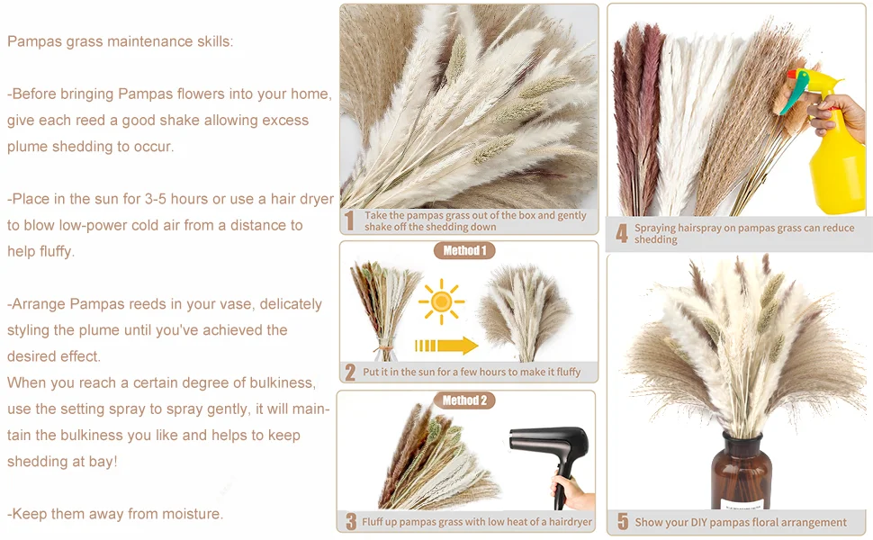 - 꽃다발을 꽃병에 넣고 따뜻한 햇빛에 몇 시간 동안 놓아두면 깃털이 부풀어오르게 됩니다.