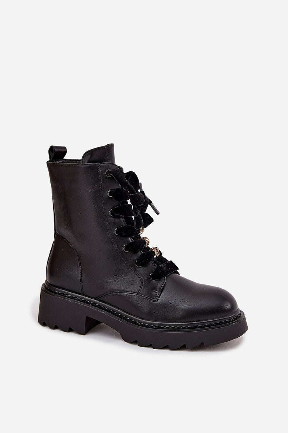 Step into season-ready style with Women's Ankle Boots Eco Leather With Velvety Lacing And Warm Lining Model 220205. Crafted from eco leather, these ankle boots blend refined elegance with contemporary edge. The soft inner lining delivers warmth and comfort through autumn and winter, while the velvety lacing adds a distinctive charm that stands out in any outfit.