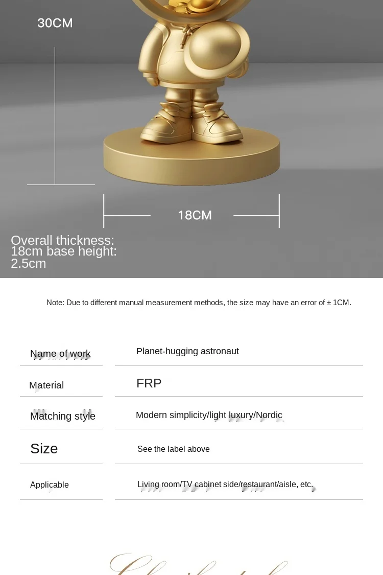 Astronaut Desktop Decoration으로 가정 장식에 독특함을 더하십시오. 고품질 FRP 소재로 제작된 이 핸드메이드 피규어는 모든 생활 공간, 어린이 방, 와인 캐비닛, 사무실 또는 데스크탑에 우주 테마의 세련미를 더하는 데 적합합니다. 열쇠수납이나 탁상장식으로 활용하여 집이나 사무실의 품격을 순식간에 올려보세요. 평범한 데코에 안주하지 마세요. 오늘 Astronaut Desktop Decoration으로 여러분의 공간에 독창성과 가족애를 더해보세요!