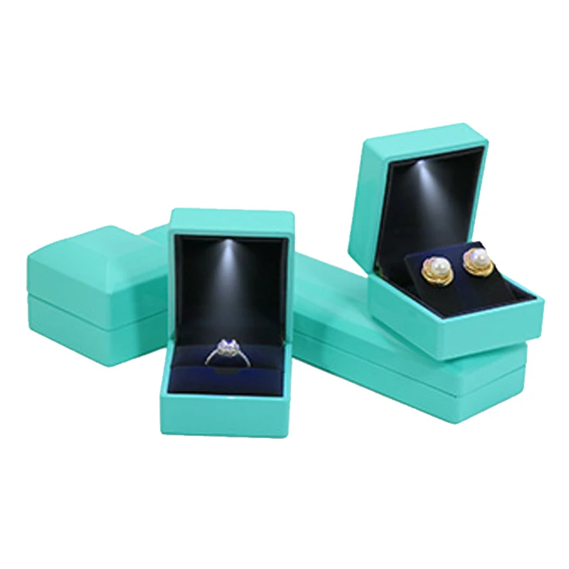 우아한 하늘색 LED 보석 반지 상자 - 결혼식을 위한 고급 디스플레이 홀더