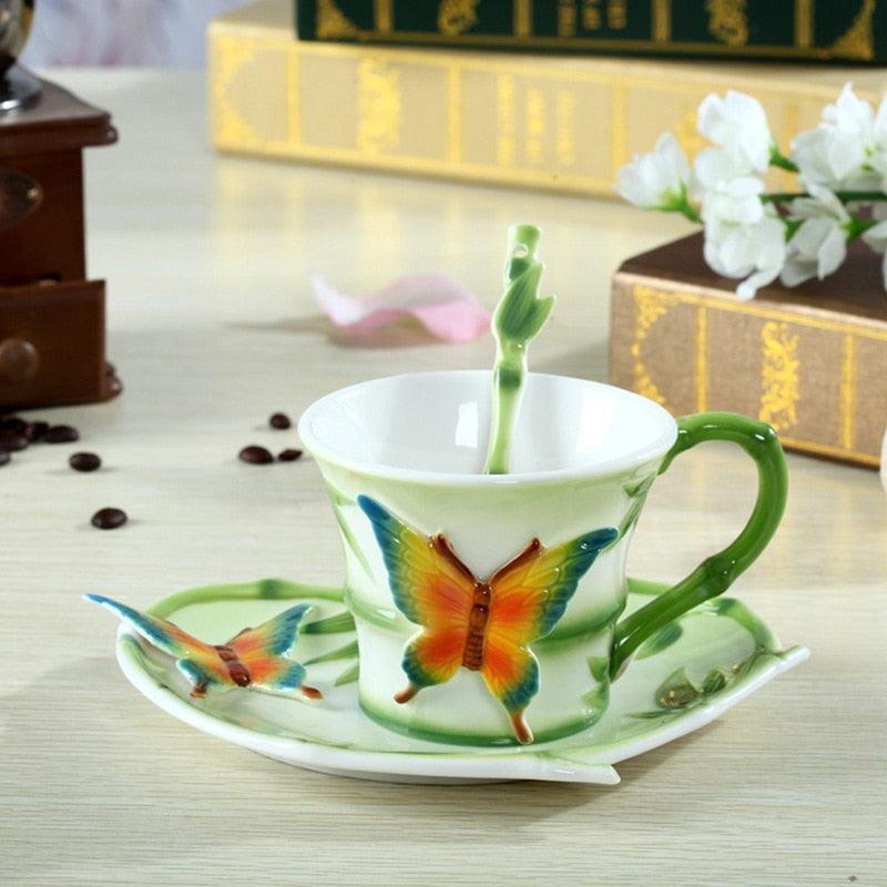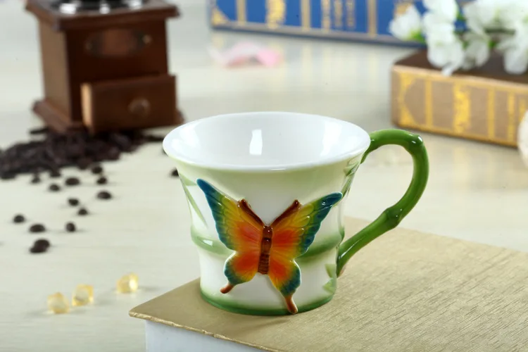 절묘한 대나무 나비 커피 머그로 우아함의 전형에 빠져보세요. 정밀하게 수작업으로 제작되고 매혹적인 3D 만화 나비 디자인으로 장식된 이 도자기 컵은 아침 의식을 즐거운 경험으로 승격시킵니다.