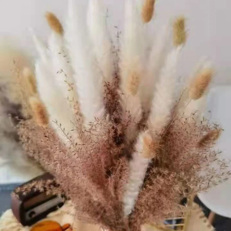 70pcs 작은 리드 토끼 잔디 혼합 말린 꽃 꽃다발 무리 사진 웨딩 파티 꽃 꽃다발 장식