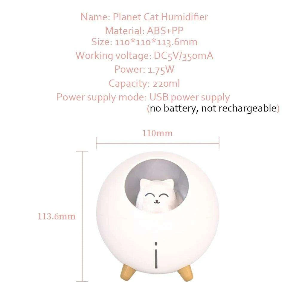 Adorable Cat-Shaped Ultrasonic Air Humidifier with Colorful LED Night Light and USB Power