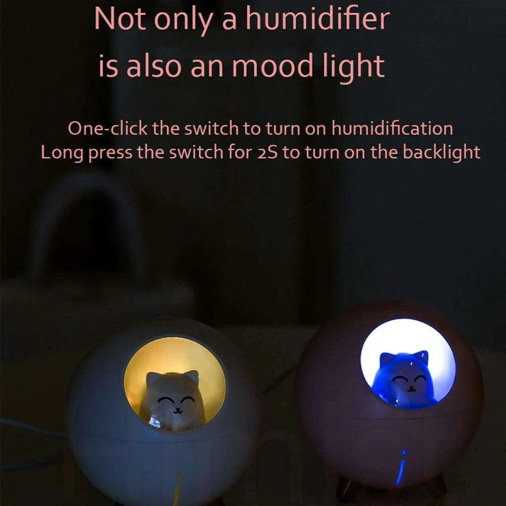 Charming Cat Design Ultrasonic Humidifier with Colorful LED Night Light and USB Compatibility