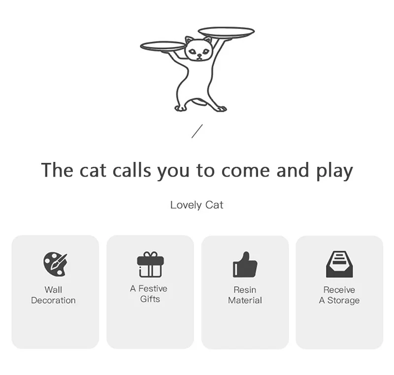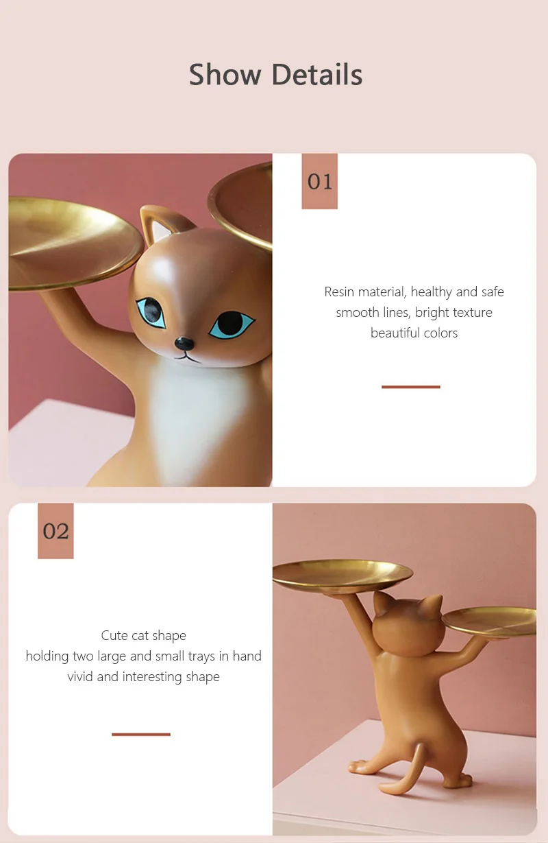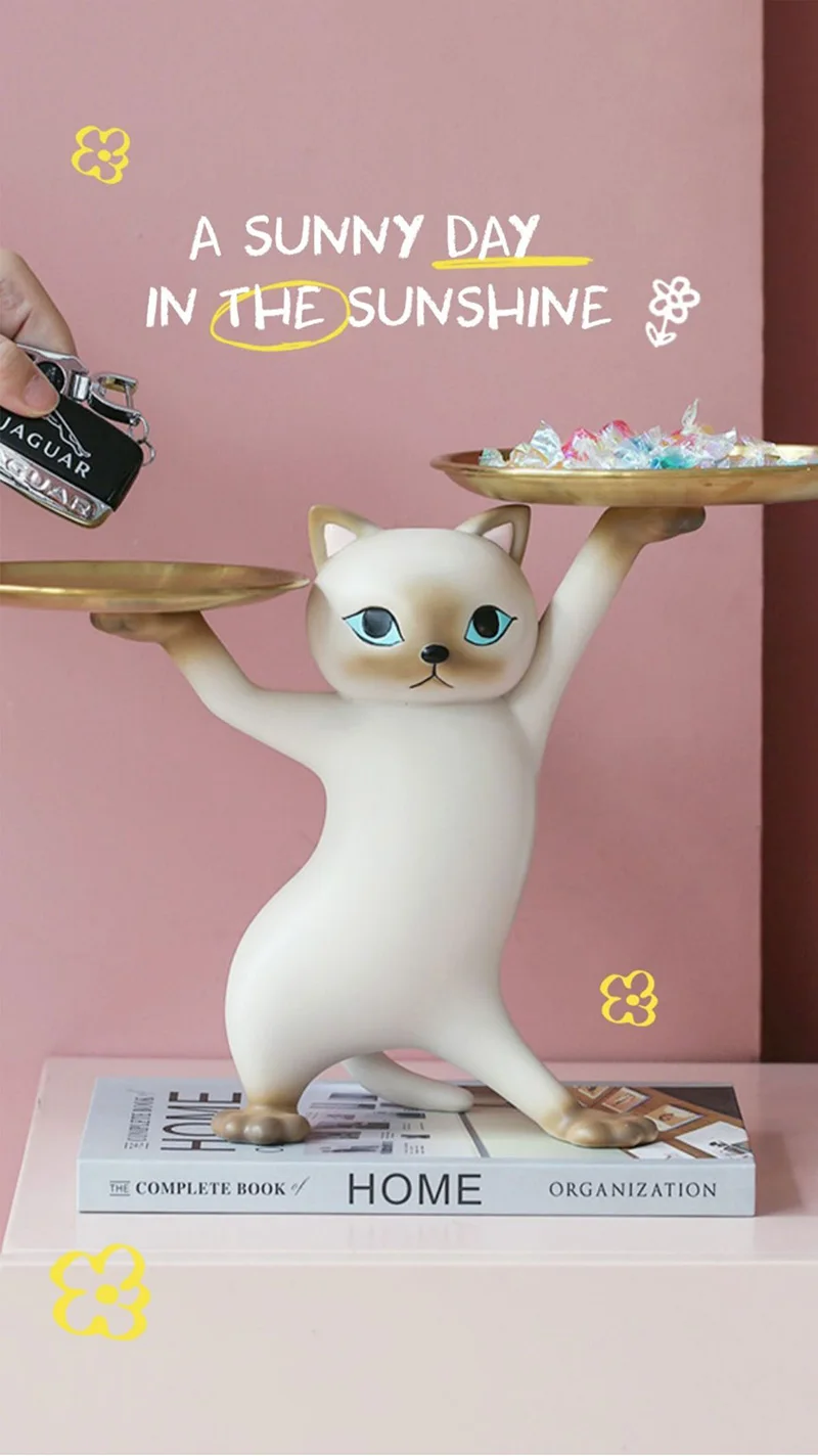 NORTHEUINS 수지 고양이 트레이 인형 인테리어 입구 키 데스크탑 캔디 스토리지 컨테이너 홈 오피스 테이블 장식 Accessorie