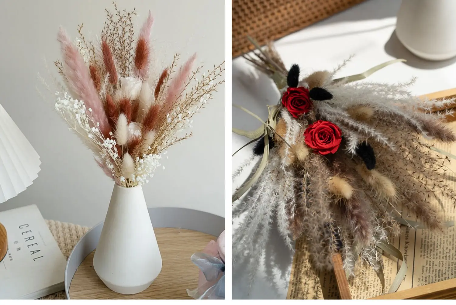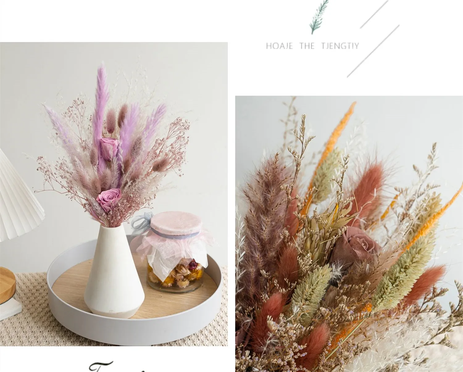 불멸의 장미 토끼 꼬리 꽃다발 홈 장식 장식 조각 갈대 꽃
