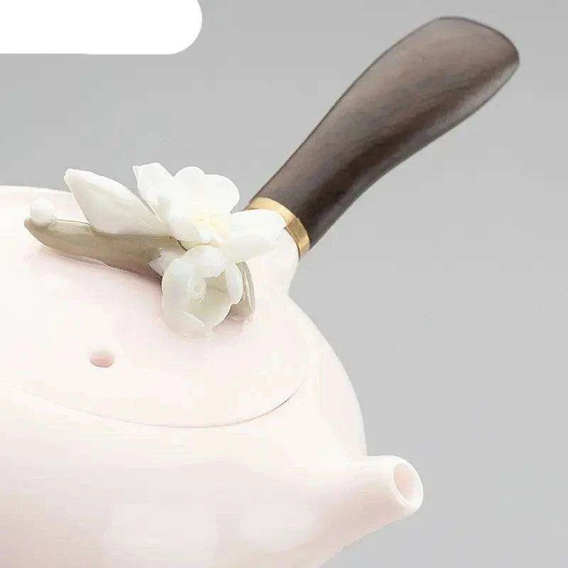 Indulge in a luxurious tea time experience with our Charming Pink Ceramic Kung Fu Tea Set, featuring a stunning Sheep Fat Jade Teapot. This exquisite tea set is designed to elevate your tea rituals, combining elegance, functionality, and a touch of tradition.