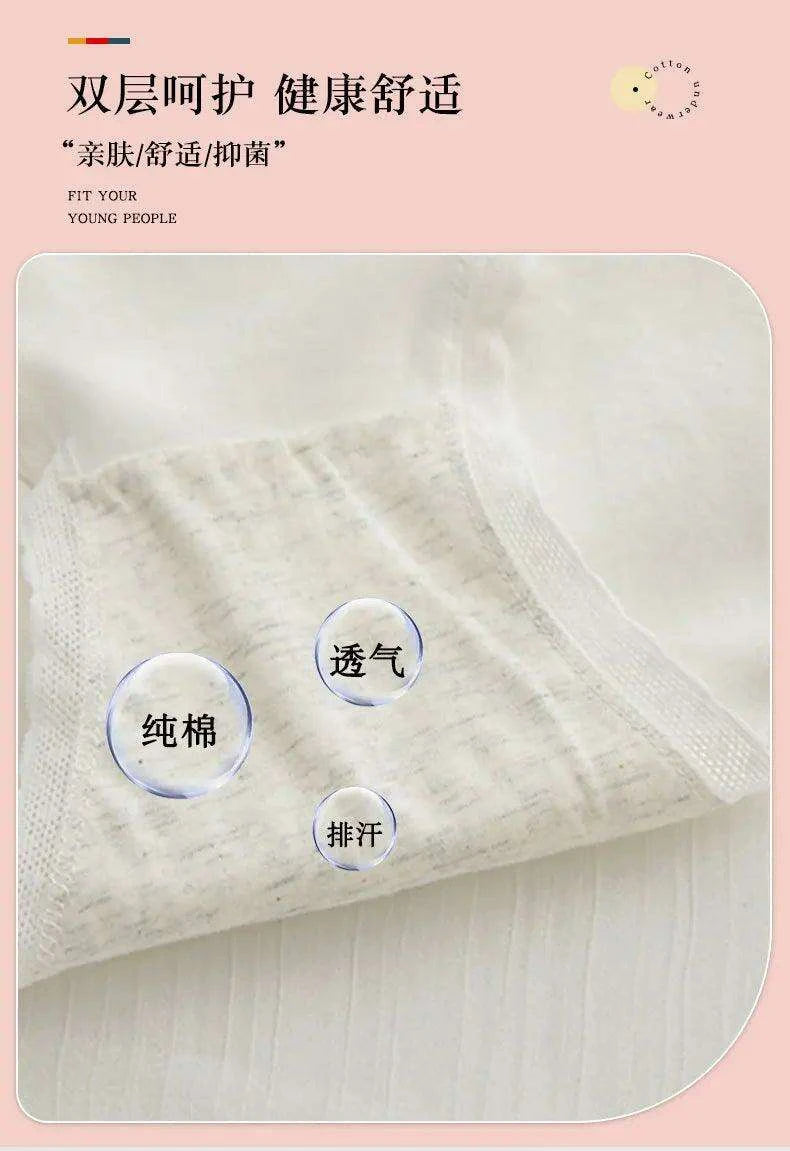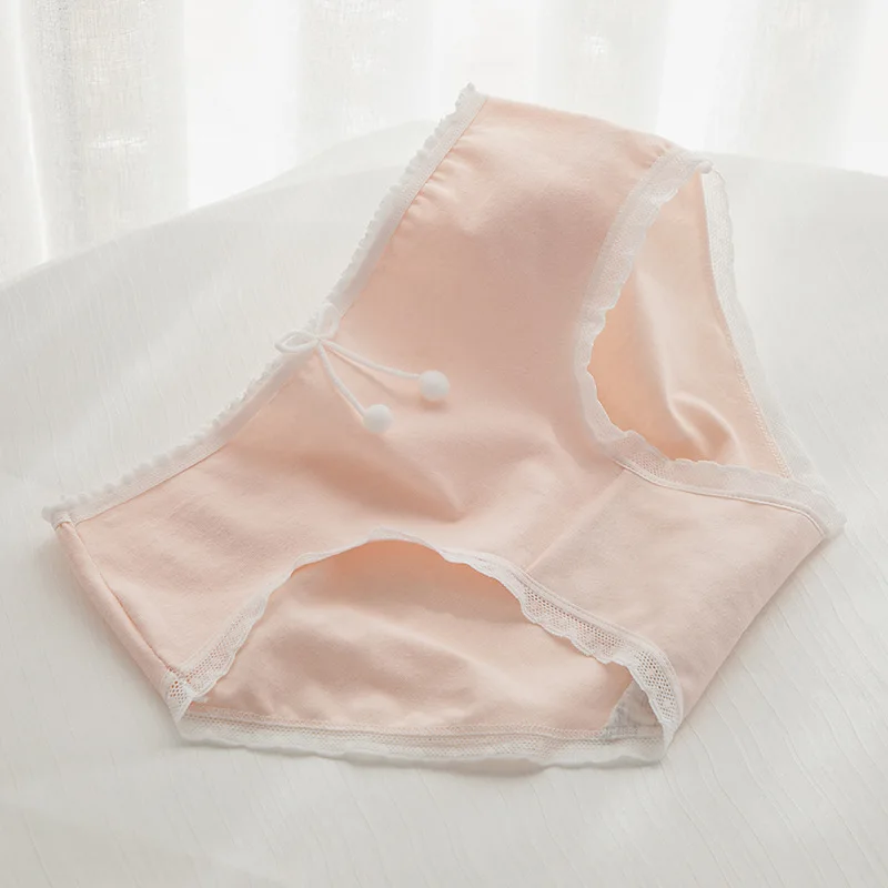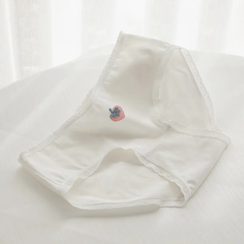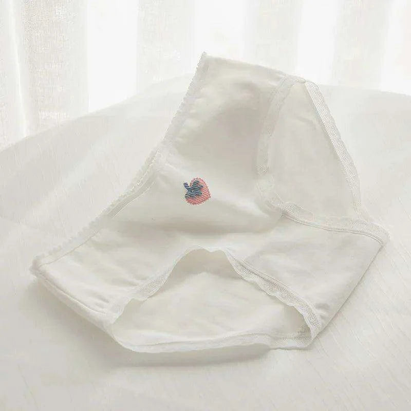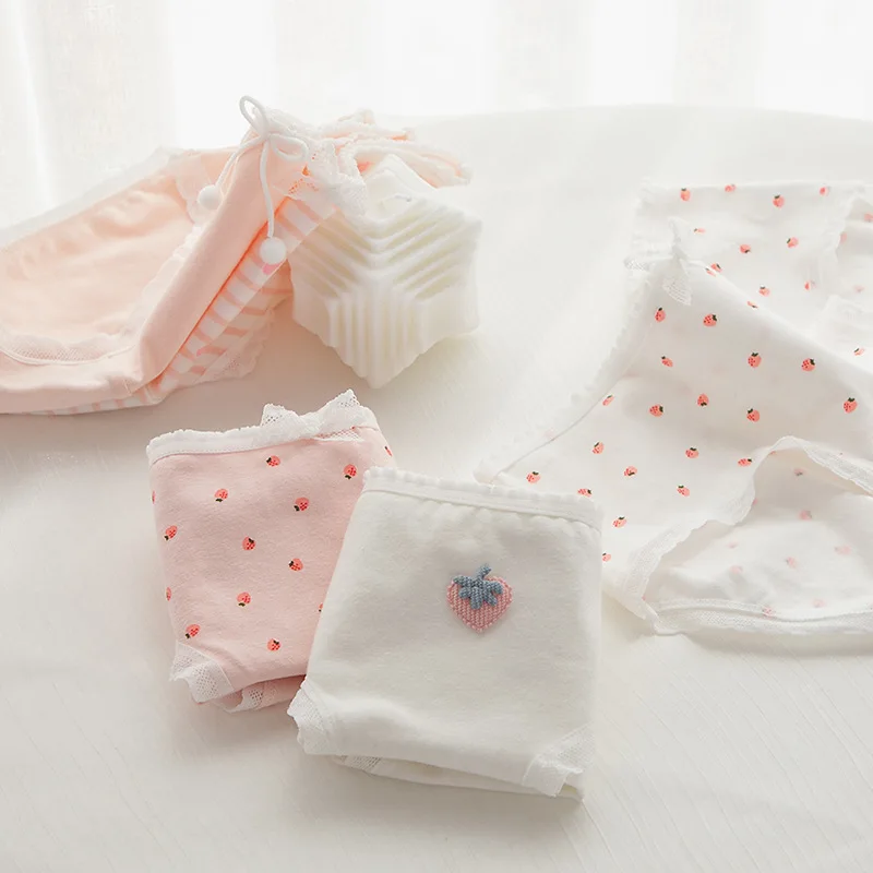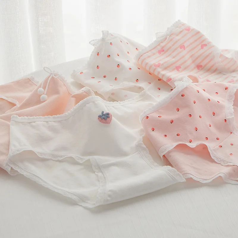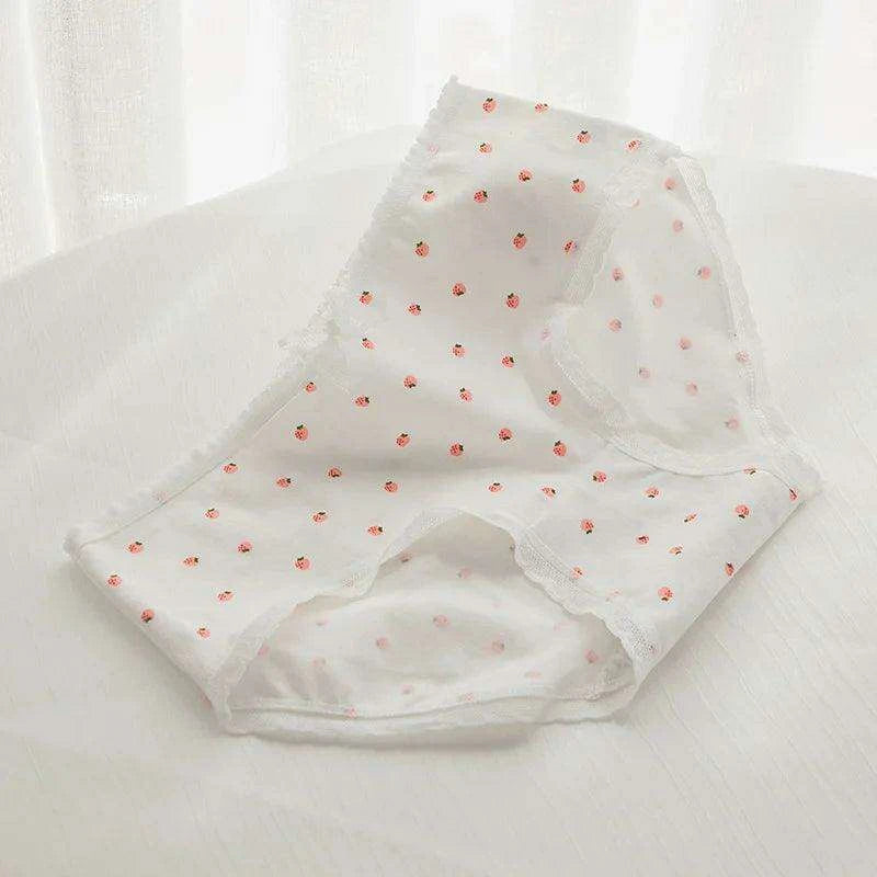Charming Pink Strawberry Bow-Embellished Cotton Underwear for Women and Students