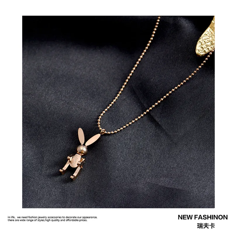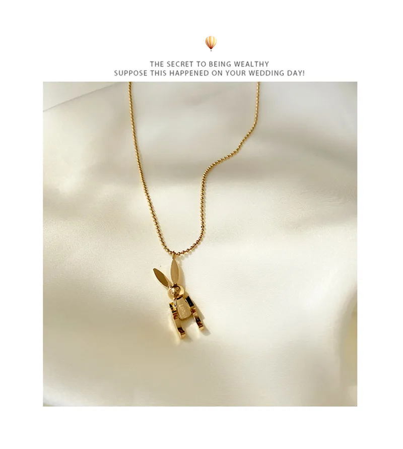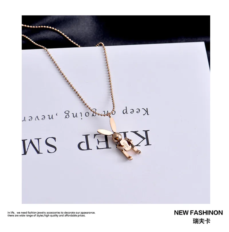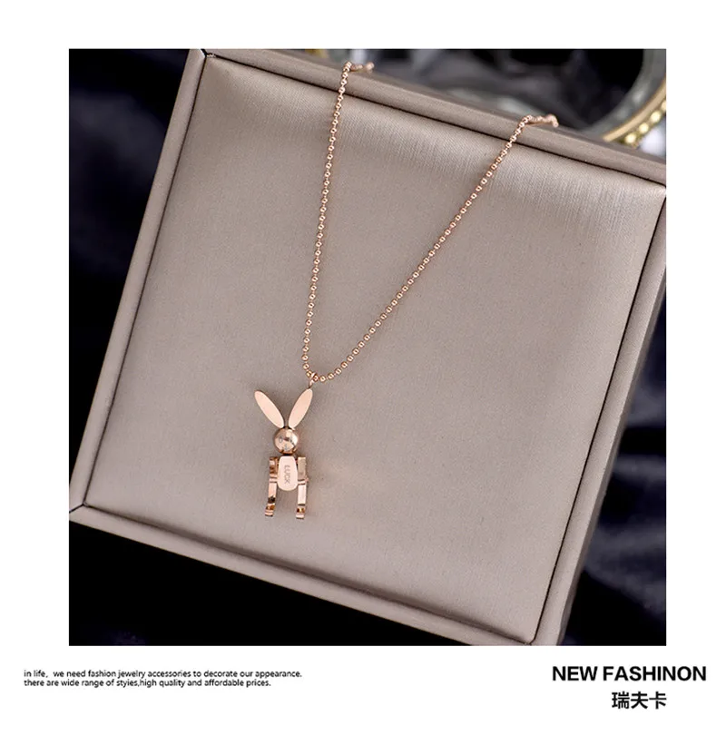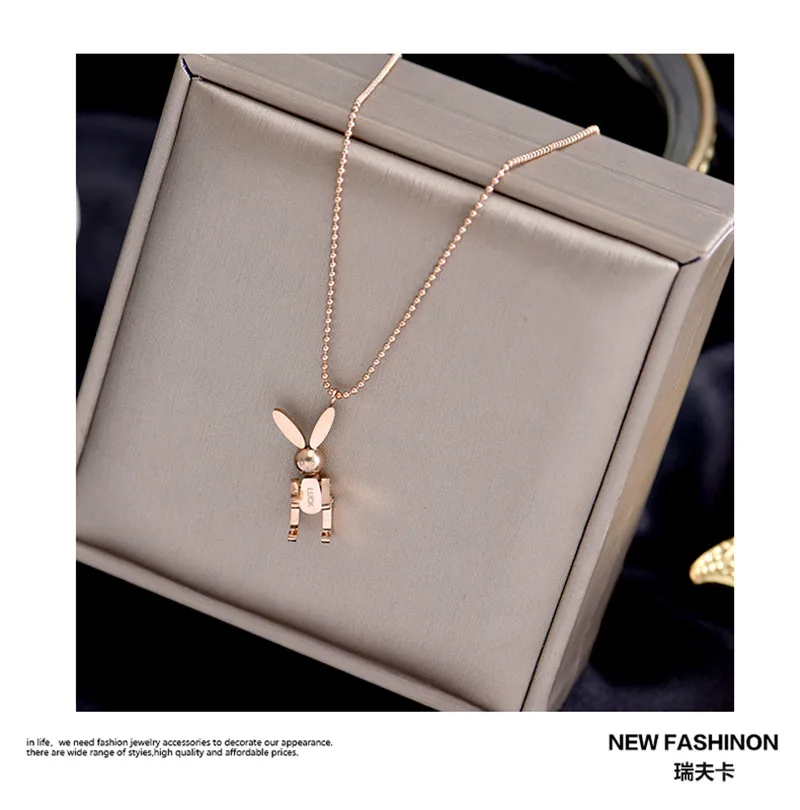 YUN RUO 트렌디 모바일 토끼 펜던트 목걸이 옐로우 골드 컬러 316L 티타늄 스틸 쥬얼리 여성 선물 절대 저자 극성 페이드