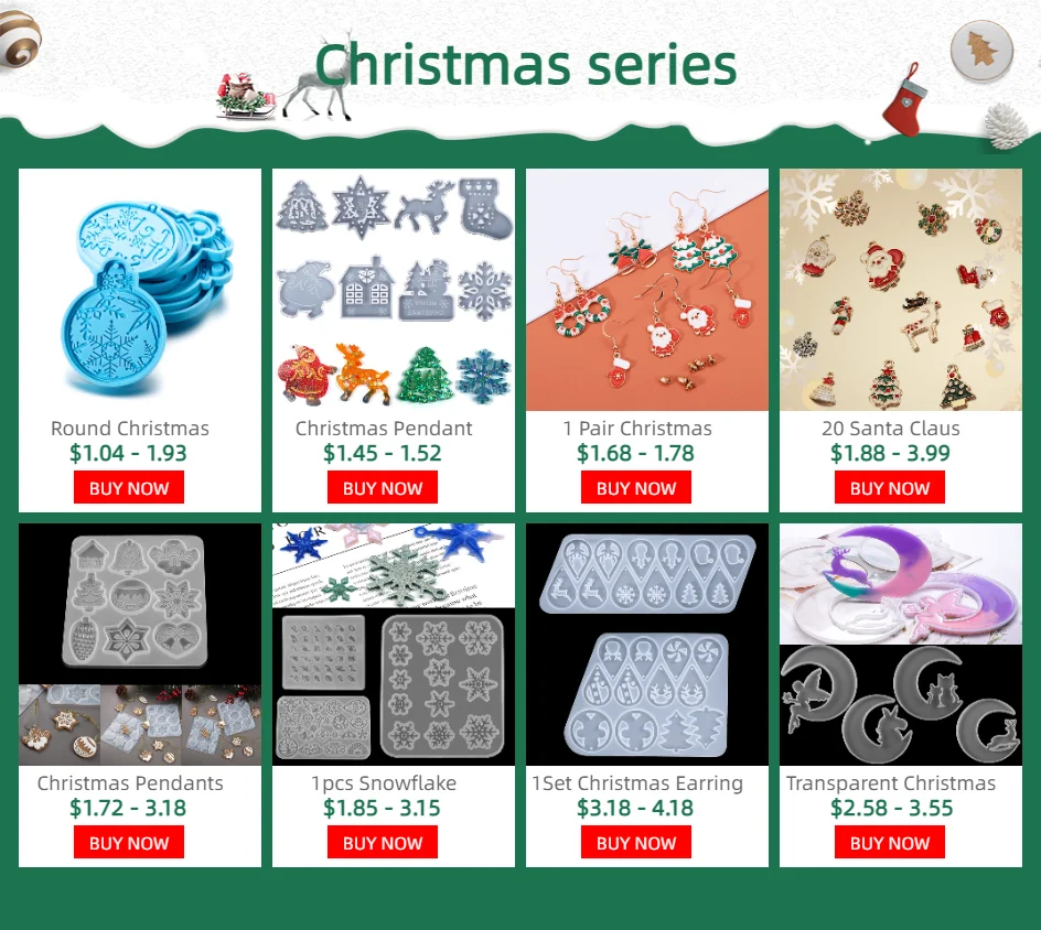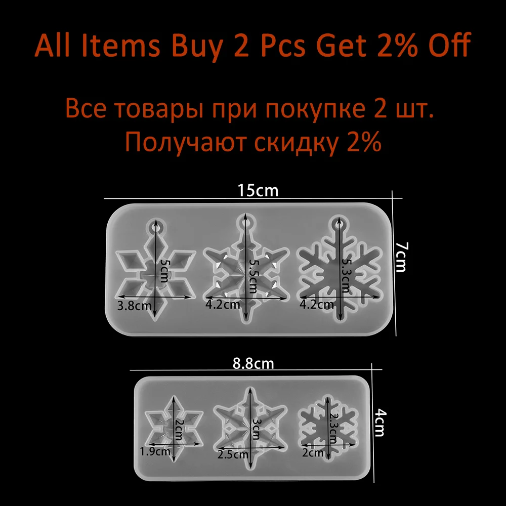 구멍이있는 멀티 스타일 눈송이 실리콘 몰드 펜던트 에폭시 수지 몰드 크리스마스 트리 매달려 홈 인테리어 DIY 쥬얼리 만들기