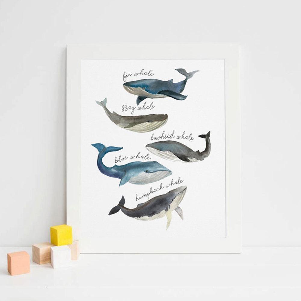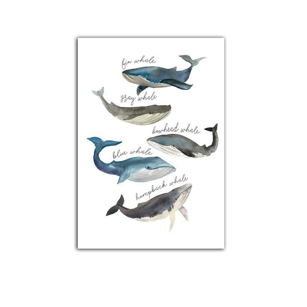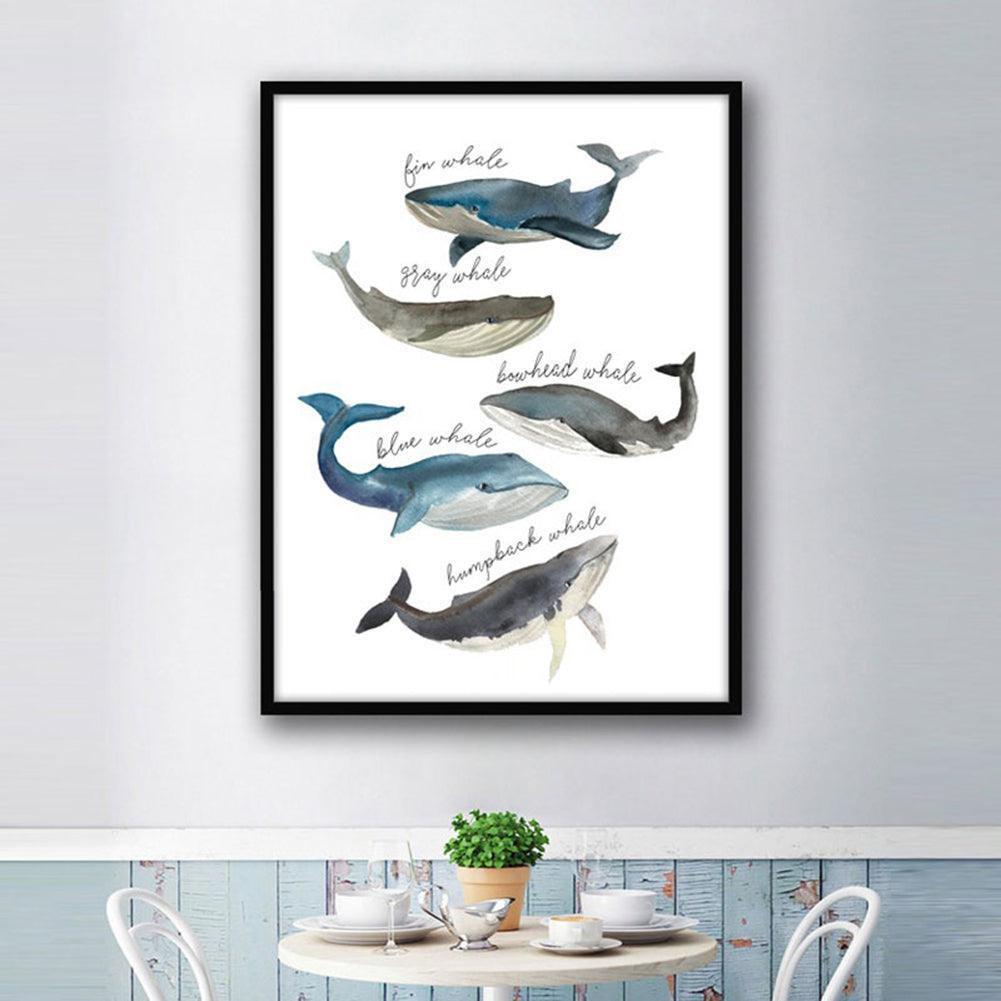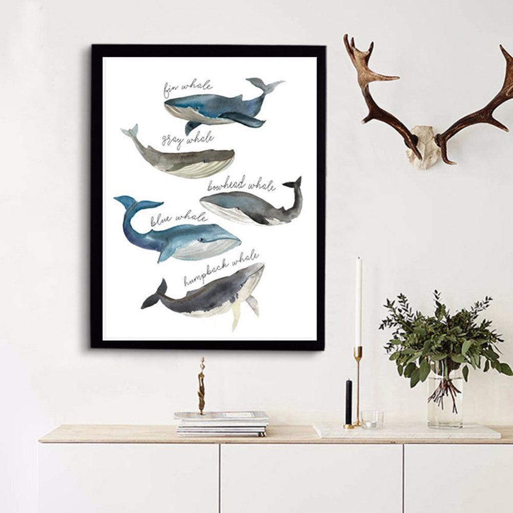 현대 가정 장식을 위한 기발한 수채화 고래 벽 예술