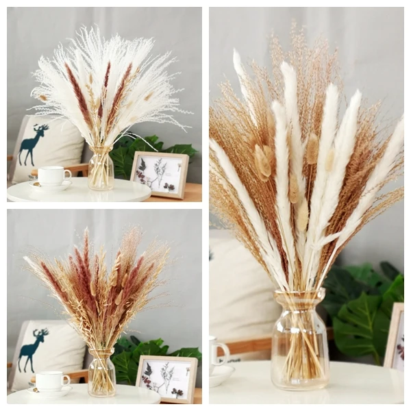 웨딩 장식용 천연 건조 팜파스 잔디 토끼 꼬리 30개