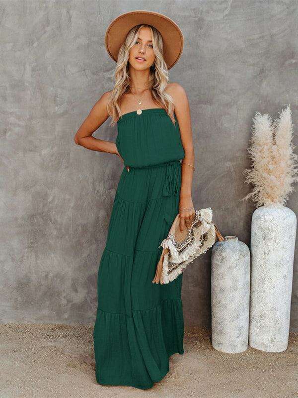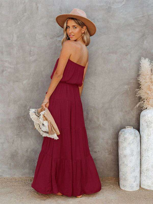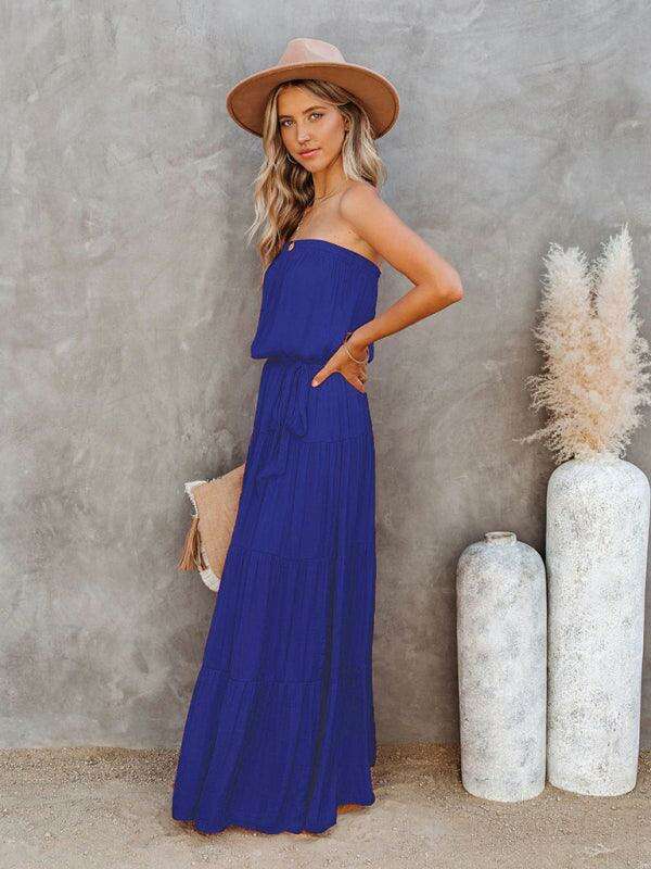 Indulge in the chic allure of this backless maxi dress featuring stunning lace adornments that elevate its fashionable appeal. The strapless design highlights your shoulders, while the sexy open-back detail adds just the right touch of allure. Perfect for daily wear, evening outings, or even professional settings, this gown effortlessly transitions from one occasion to another.