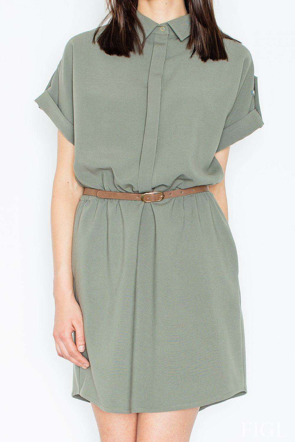Step into a realm of sophistication with the Elegant Belted Kimono Sleeve Dress from Figl. This exquisite piece, part of the Daydress model 50882, masterfully blends comfort and elegance, making it an essential addition to your wardrobe.