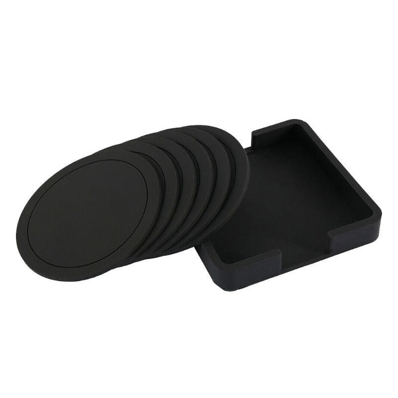 컵 홀더가 포함된 7피스 미끄럼 방지 실리콘 음료 코스터 세트 - 가정 및 사무실을 위한 세련된 블랙 탁상 보호