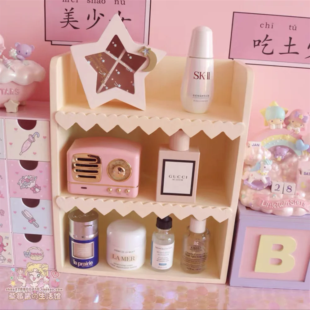 핑크 소녀 북유럽 나무 캐비닛 귀여운 3 층 데스크탑 스토리지 랙 화장품 브러시 주최자 홈 침실 장식 장식품 새로운