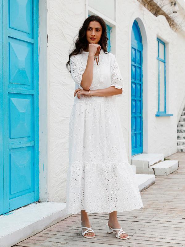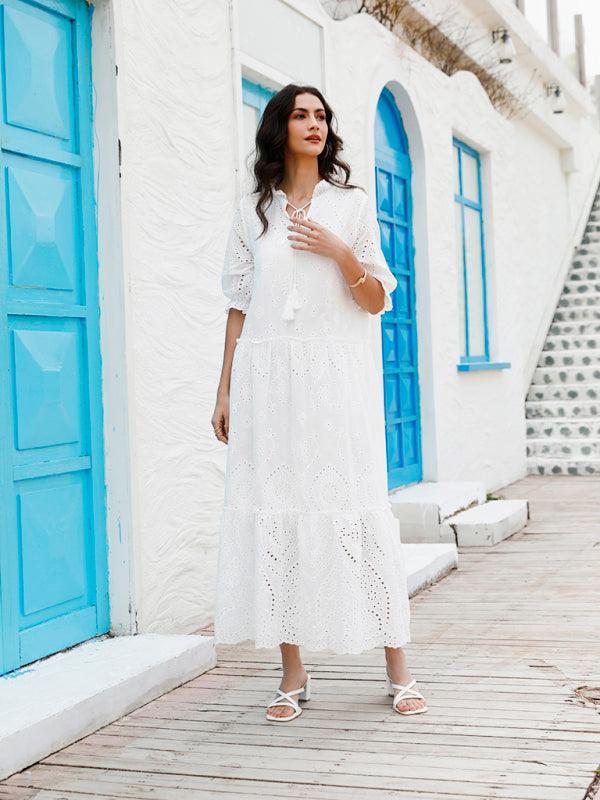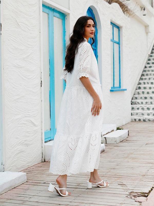 퍼프 슬리브로 고정된 코튼 아일렛 드레스를 입고 방 안의 낭만의 원천이 되어보세요.