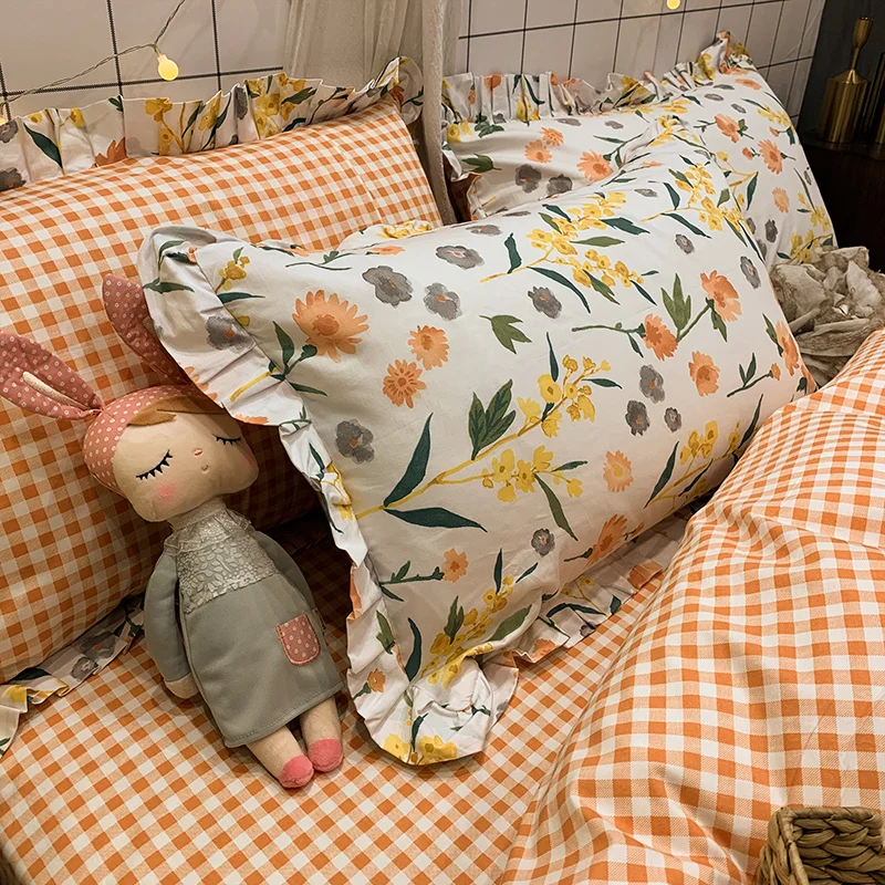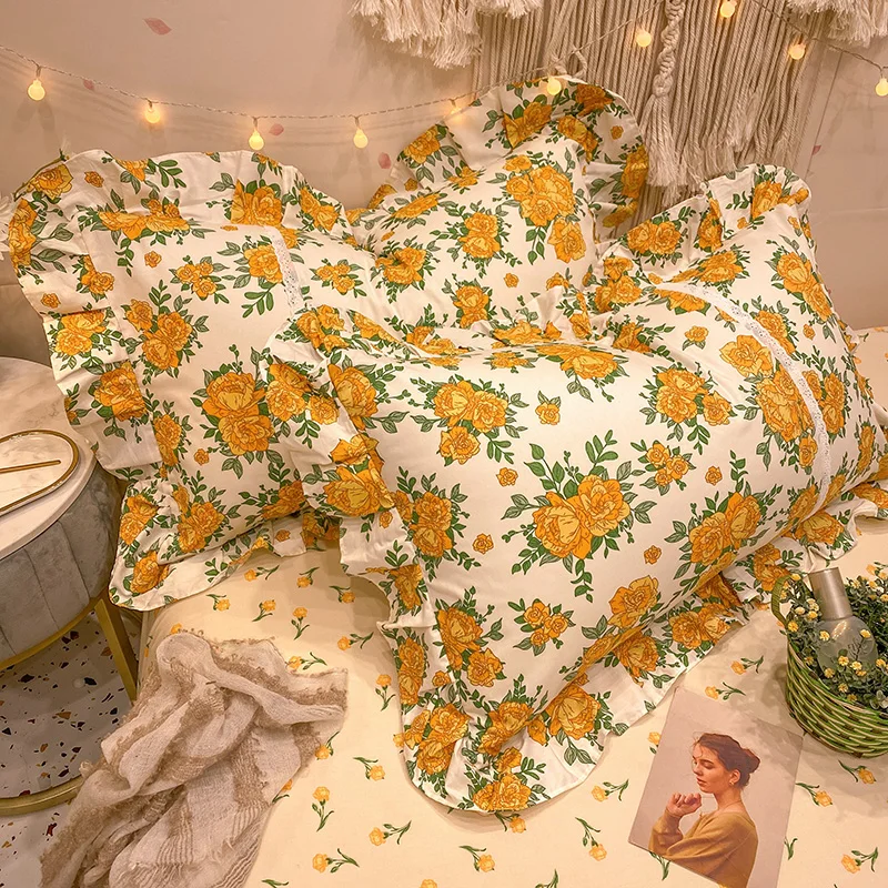 2pcs 면 베개 케이스 | 꽃무늬 | 공주 침구 액세서리