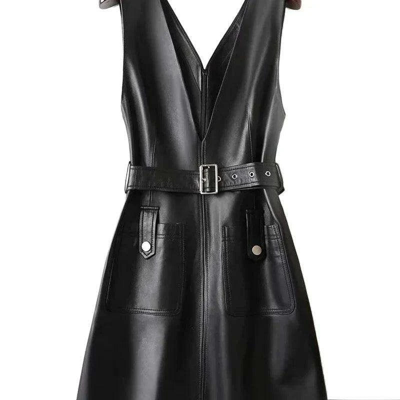 Chic Customizable Black Faux Leather Midi Dress with Pockets for Women - Perfect Bodycon Clubwear