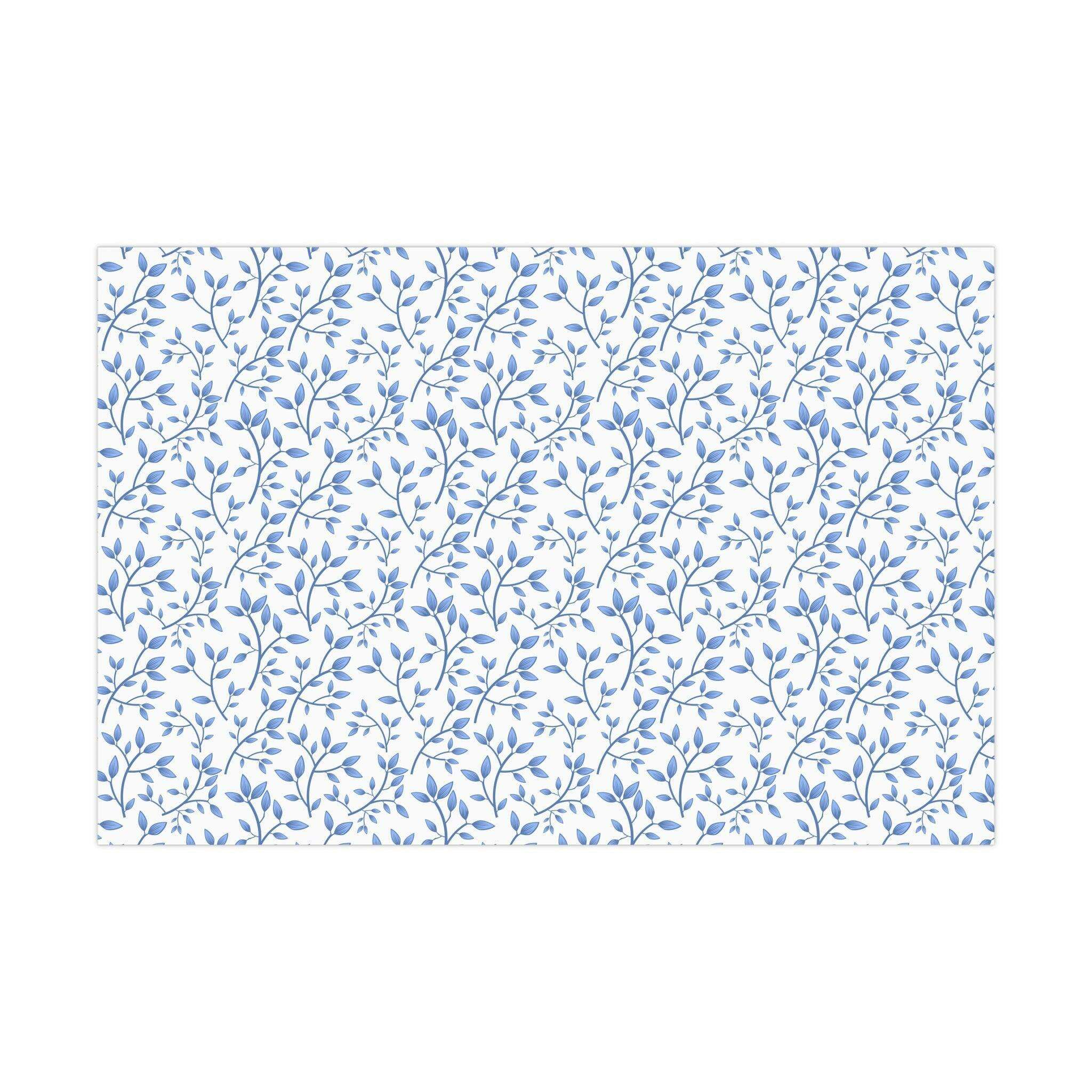 Chic Customizable Blue Floral Gift Wrap Paper Set: Premium Eco-Friendly Matte and Satin Finishes with Multiple Size Choices..
