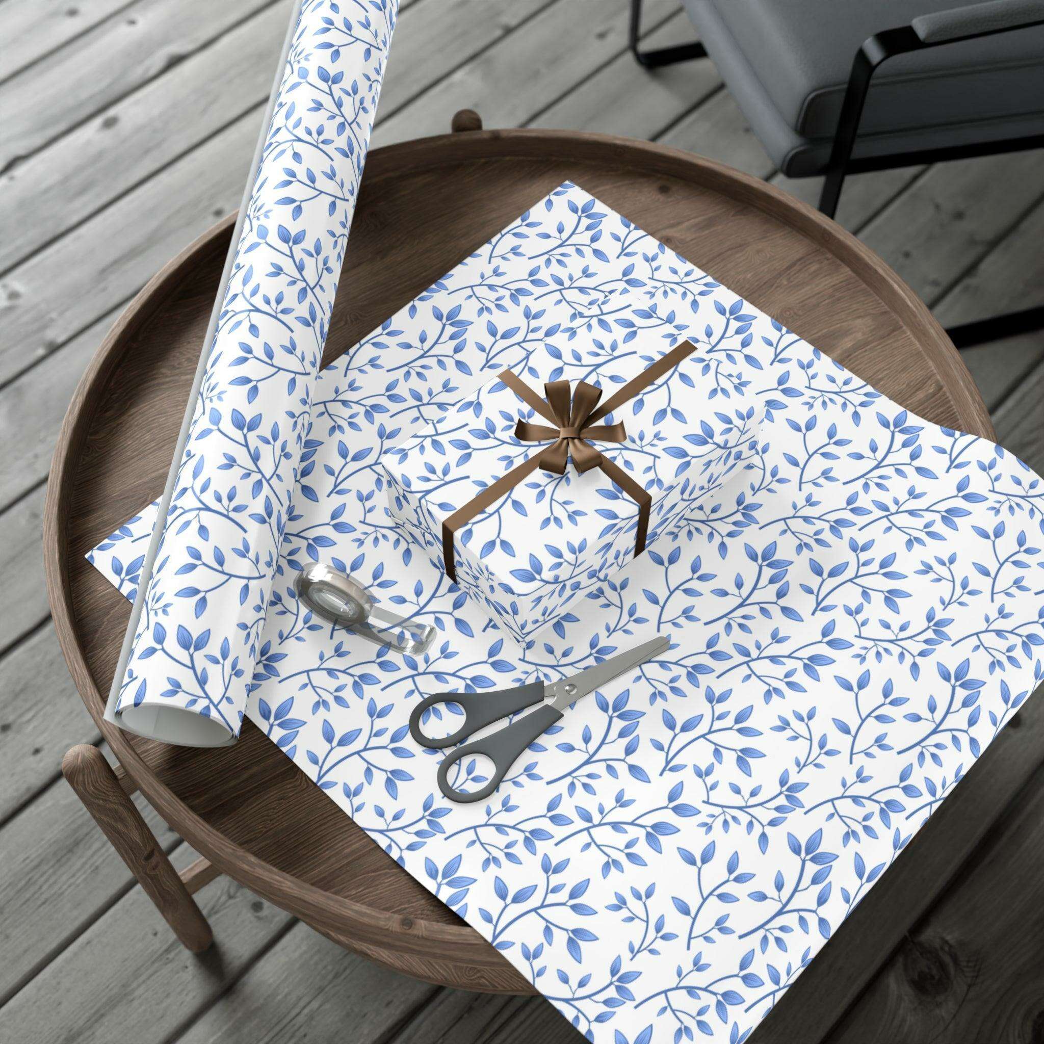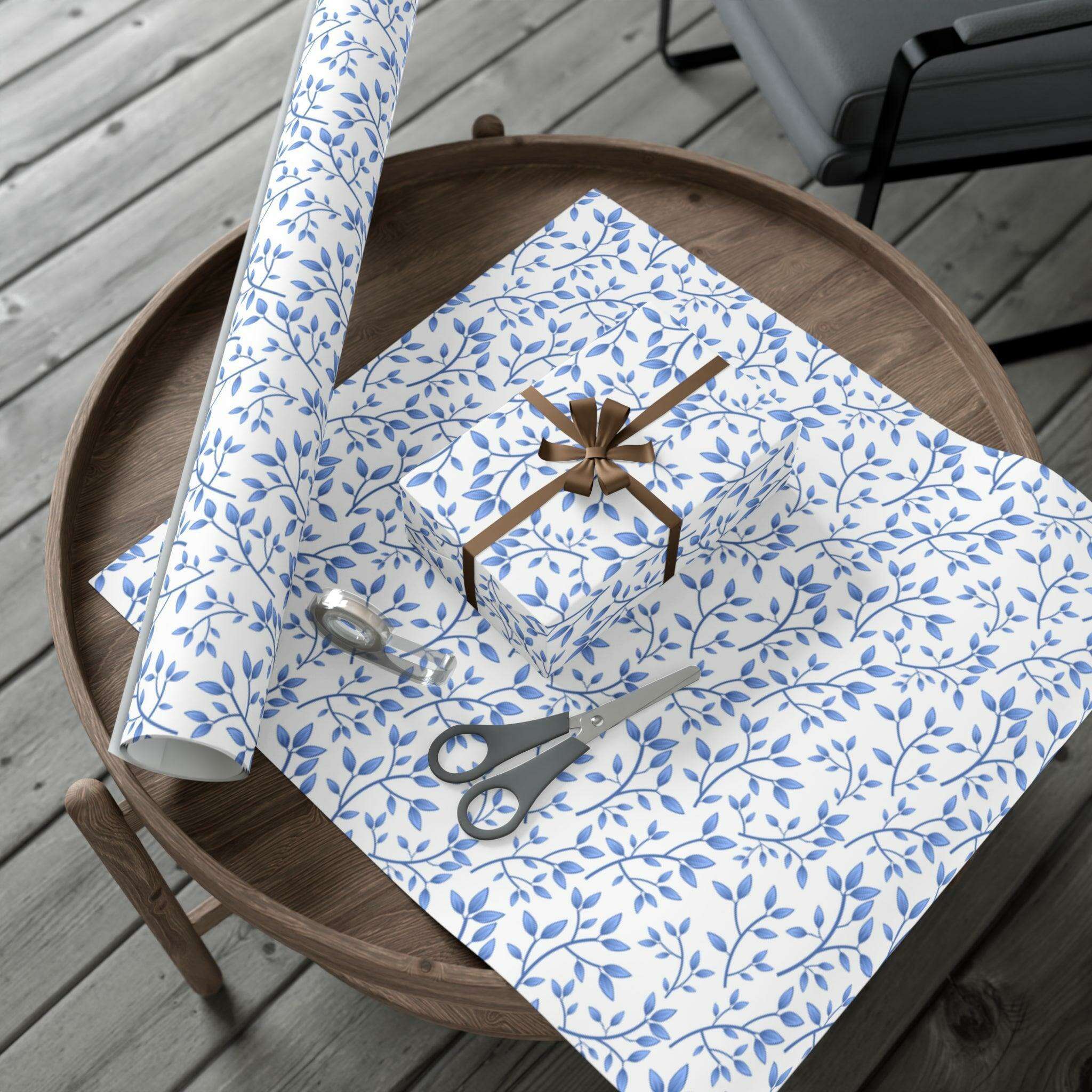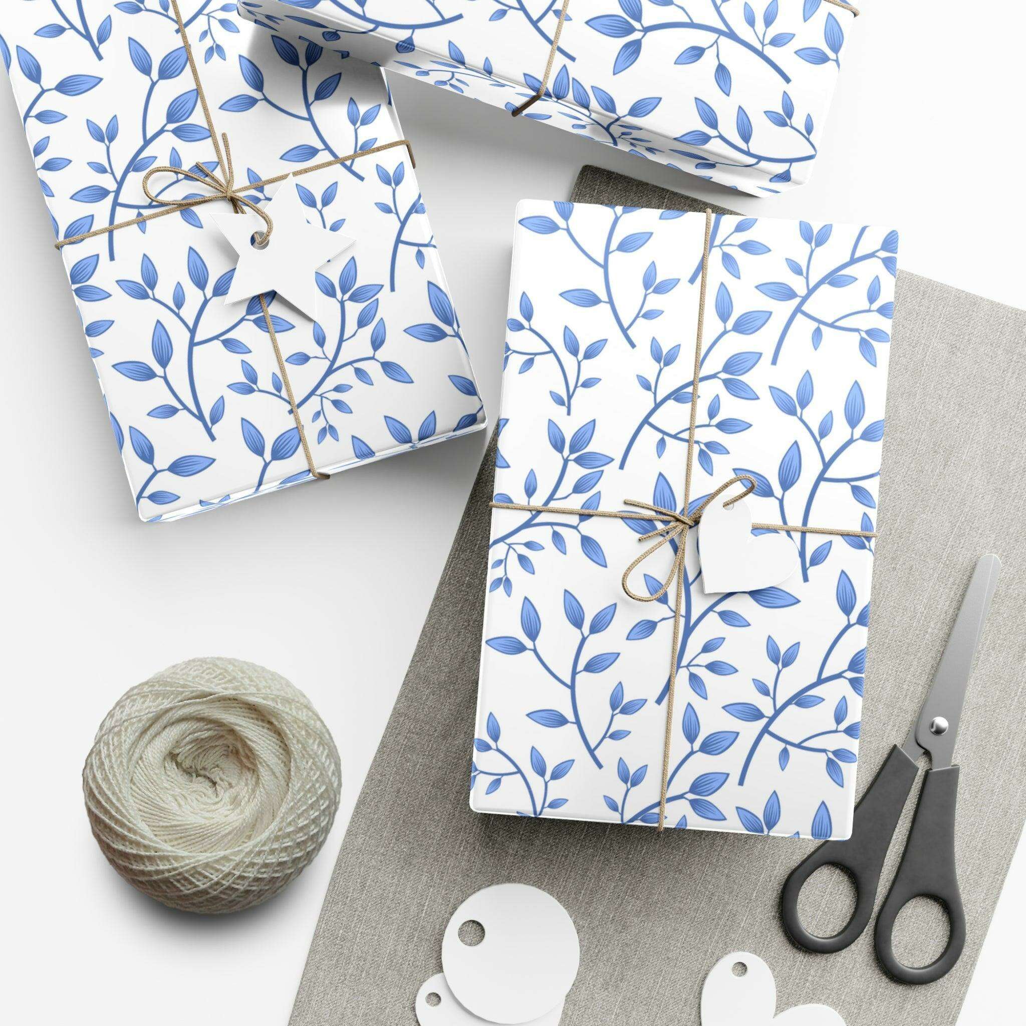 Elegant Blue Floral Customizable Gift Wrap Paper Set: Premium Matte and Satin Finishes - Eco-Conscious with Three Size Options