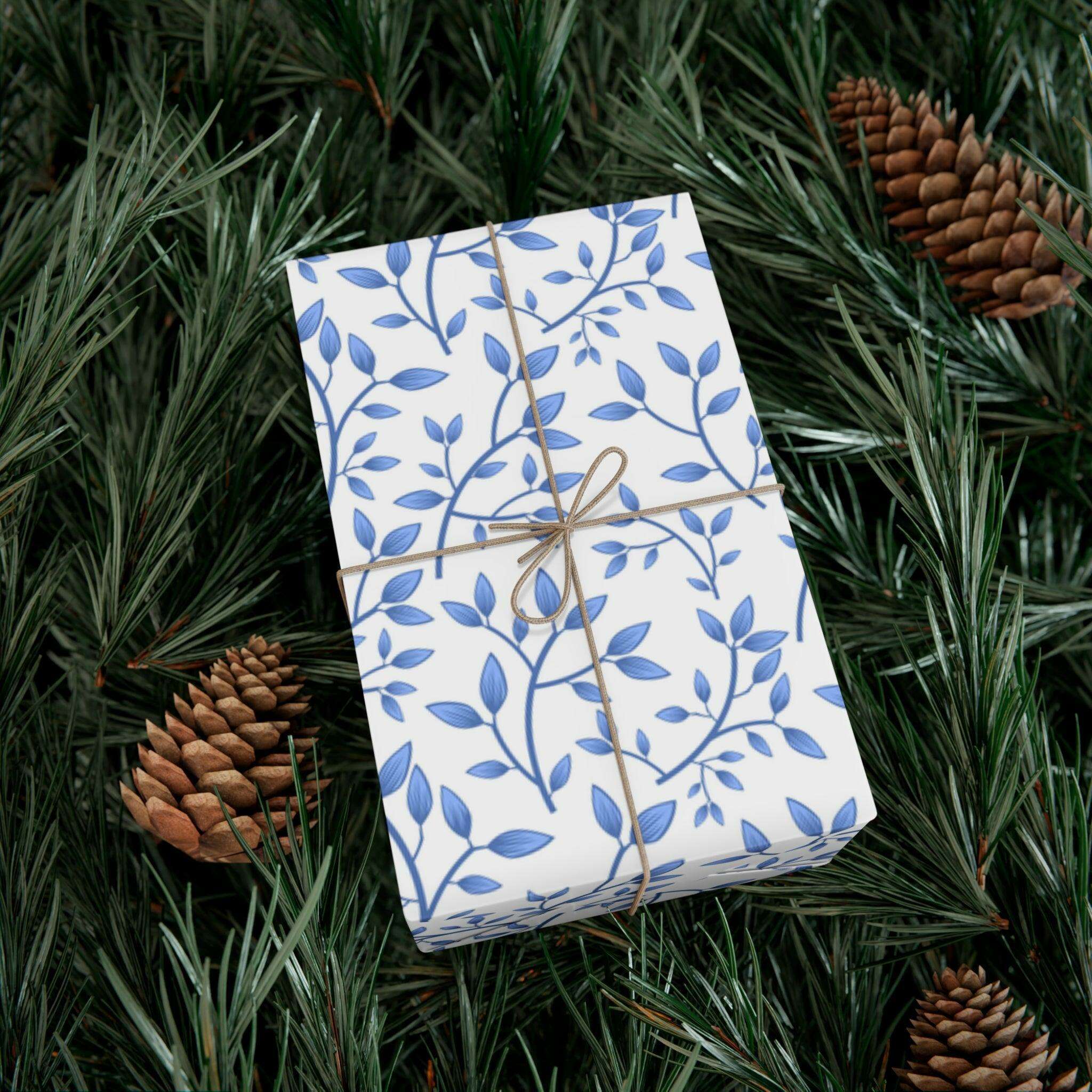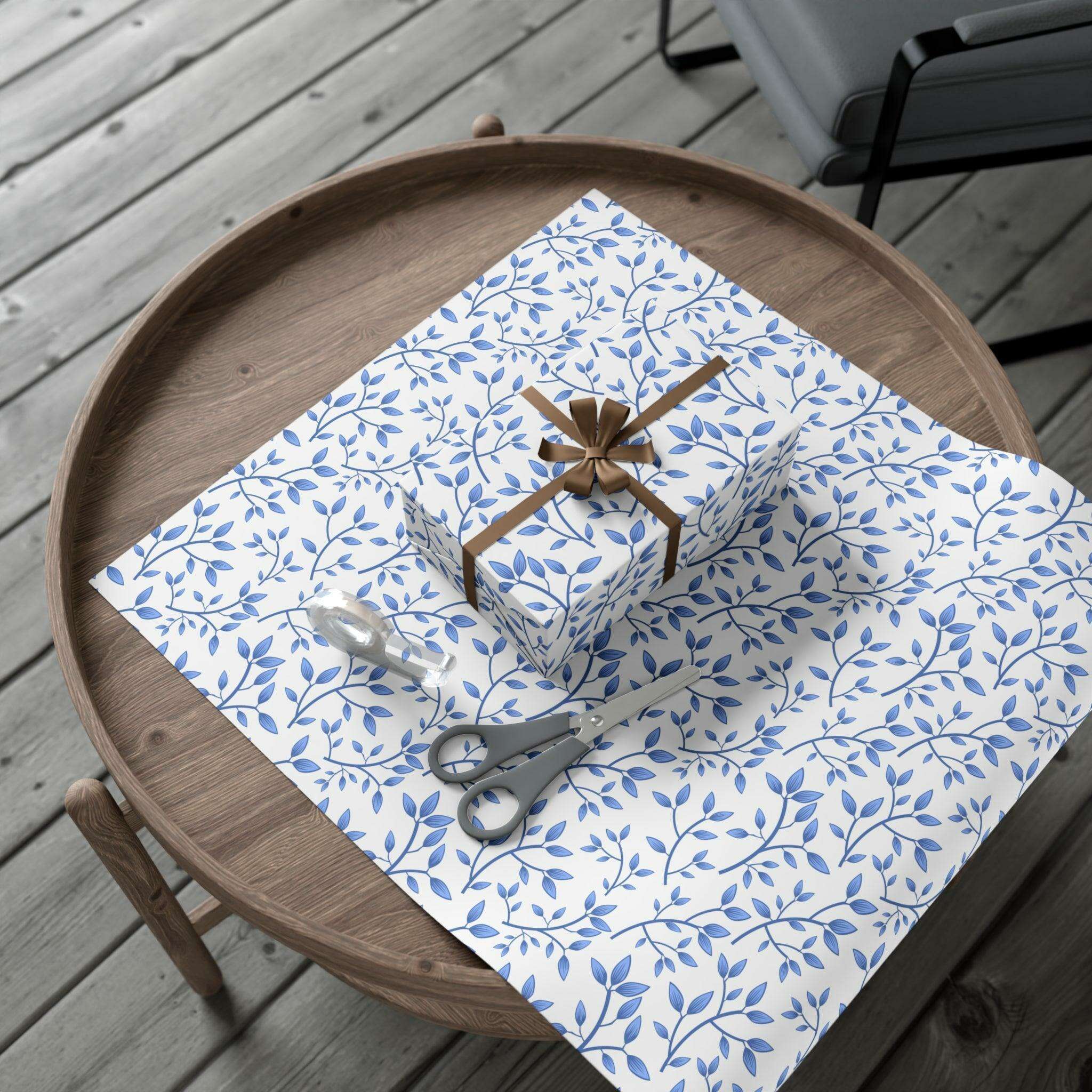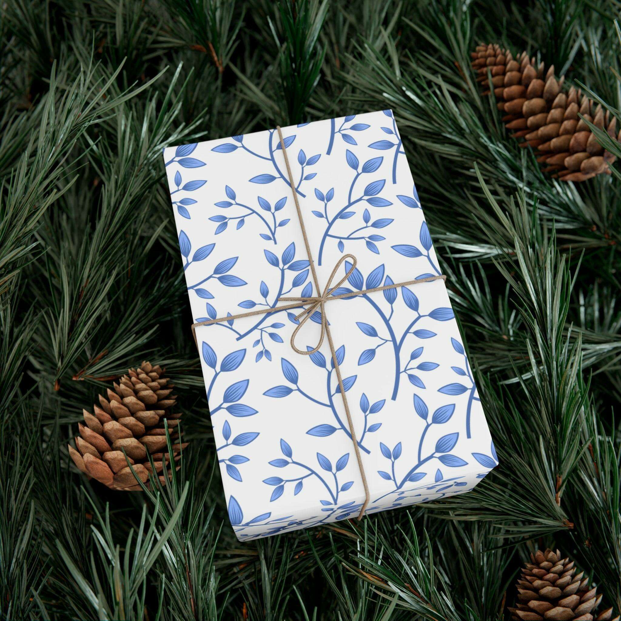 Elegant Blue Floral Customizable Gift Wrap Paper Set: Premium Matte and Satin Finishes - Eco-Conscious with Three Size Options
