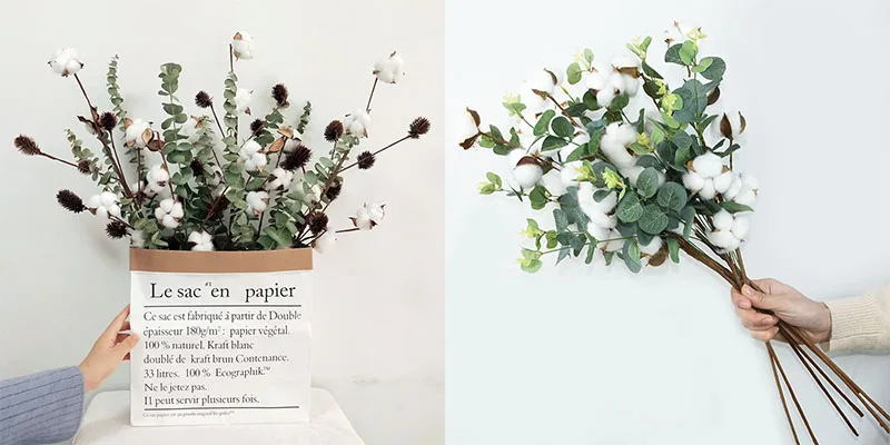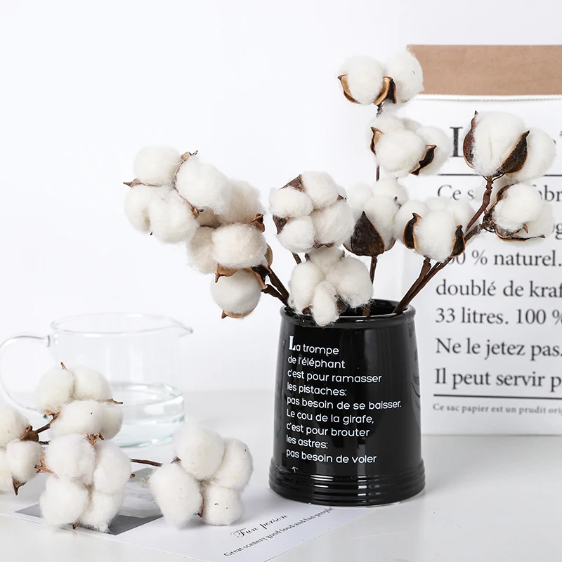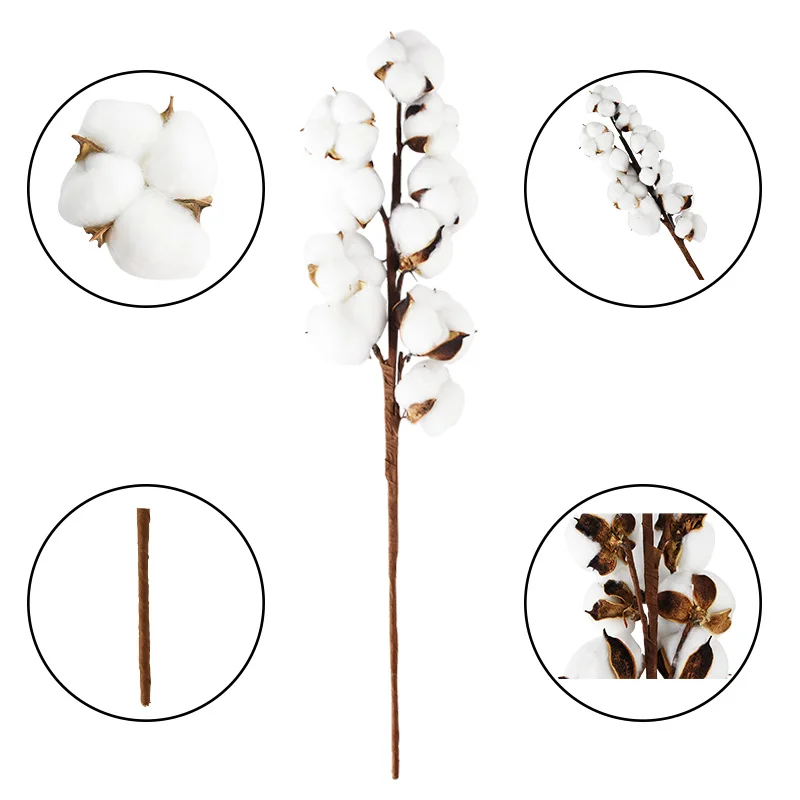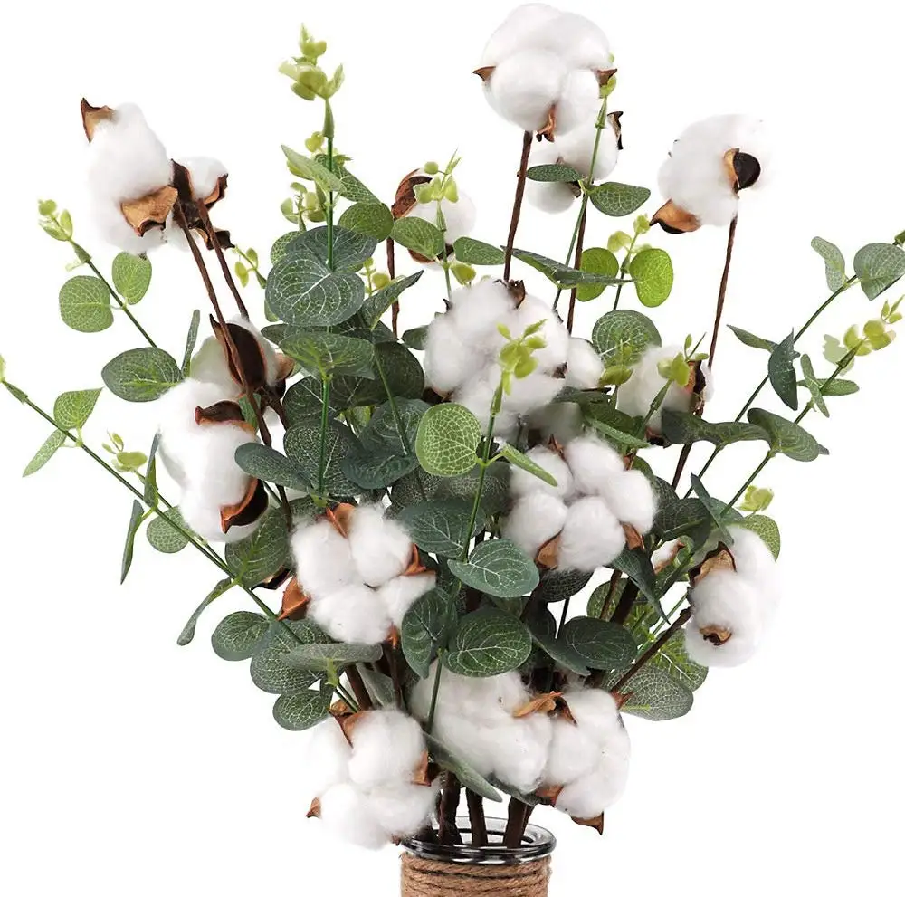 10 머리 자연 건조 목화 꽃 식물 꽃 가지