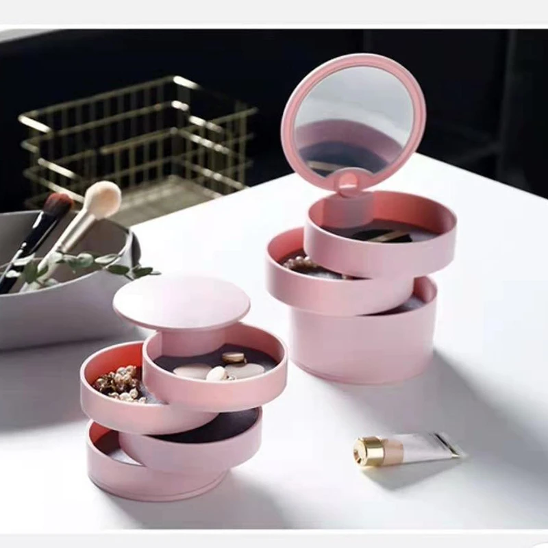 거울이 있는 다층 회전식 보석 정리함