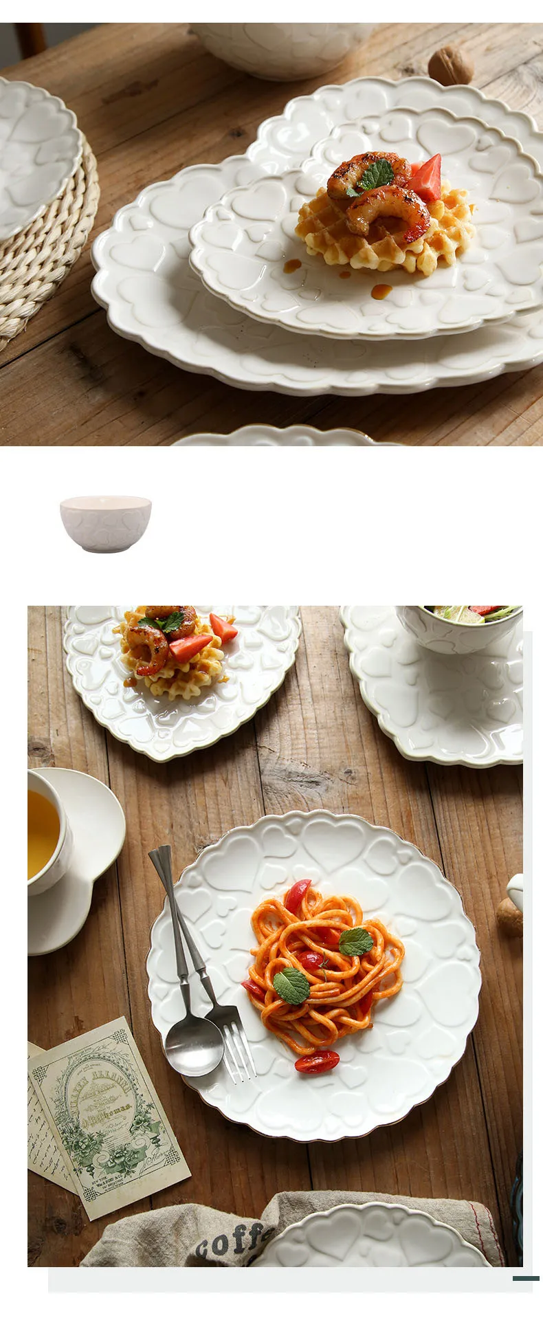 법원 꽃무늬 양각 디자인이 특징인 세련된 프랑스 세라믹 접시 세트