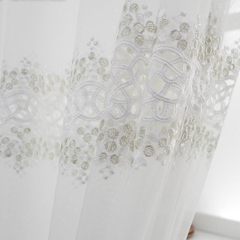 Luxury Botanica 모던 기하학 자수 튤 창 커튼 - Translucidus, 유럽 스타일