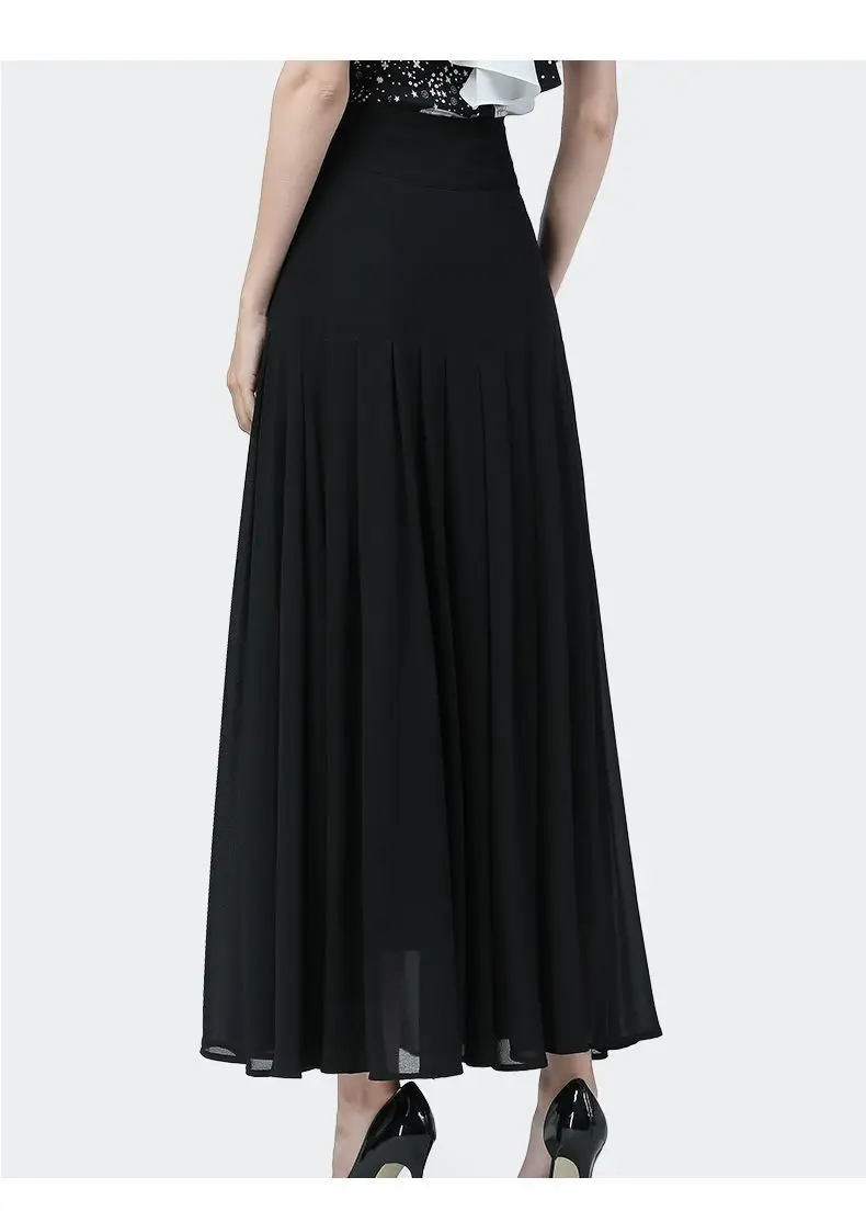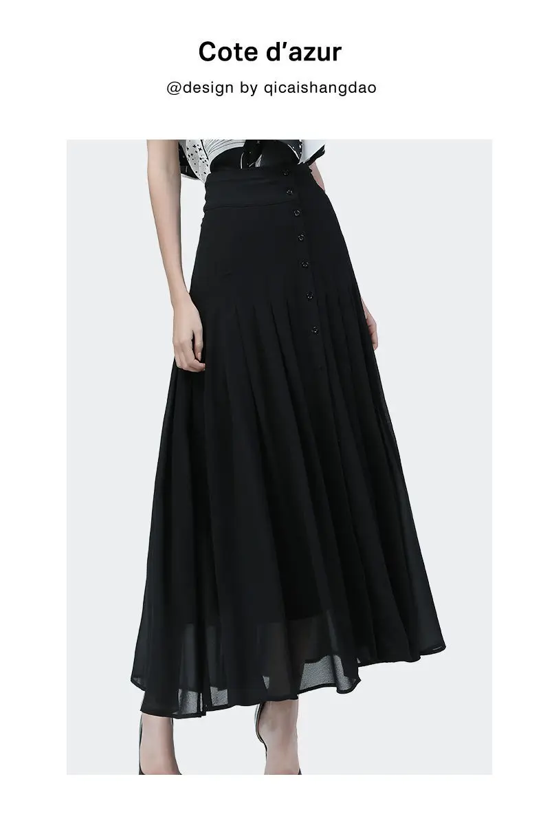 Pleated Skirts 하이 웨스트 a 라인 시폰 스커트 여성 2022 빈티지 섹시 버튼 슬릿 롱 스커트 여성용