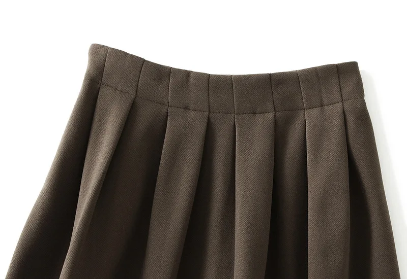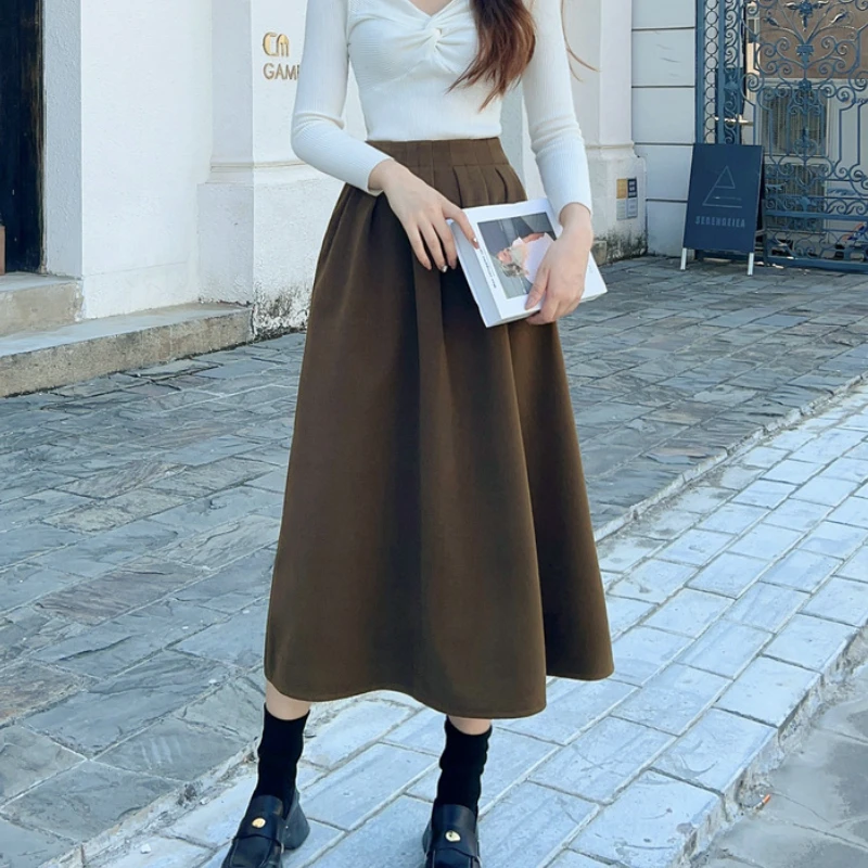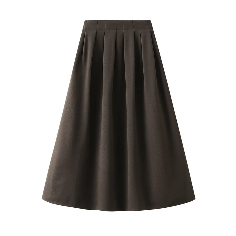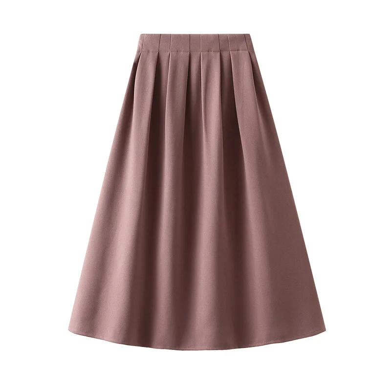 패션 한국어 스타일 하이 웨스트 플리츠 스커트 솔리드 오피스 레이디 a 라인 미디 스커트 여성 의류 루즈 슬림 스커트