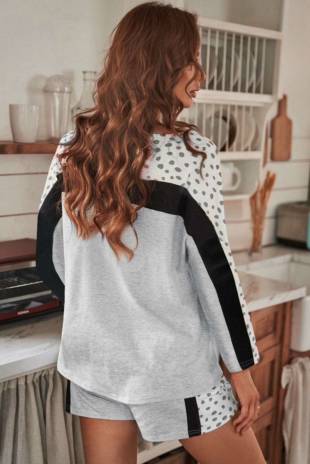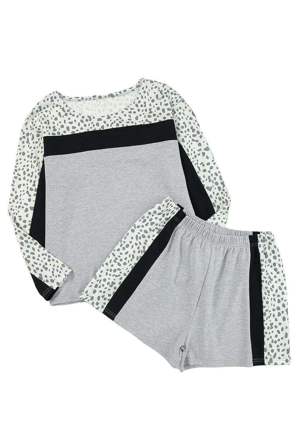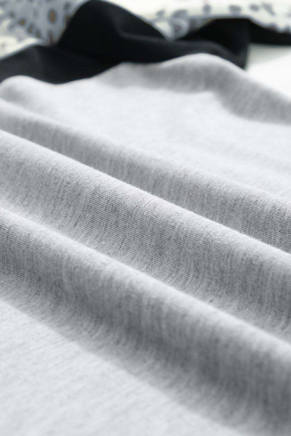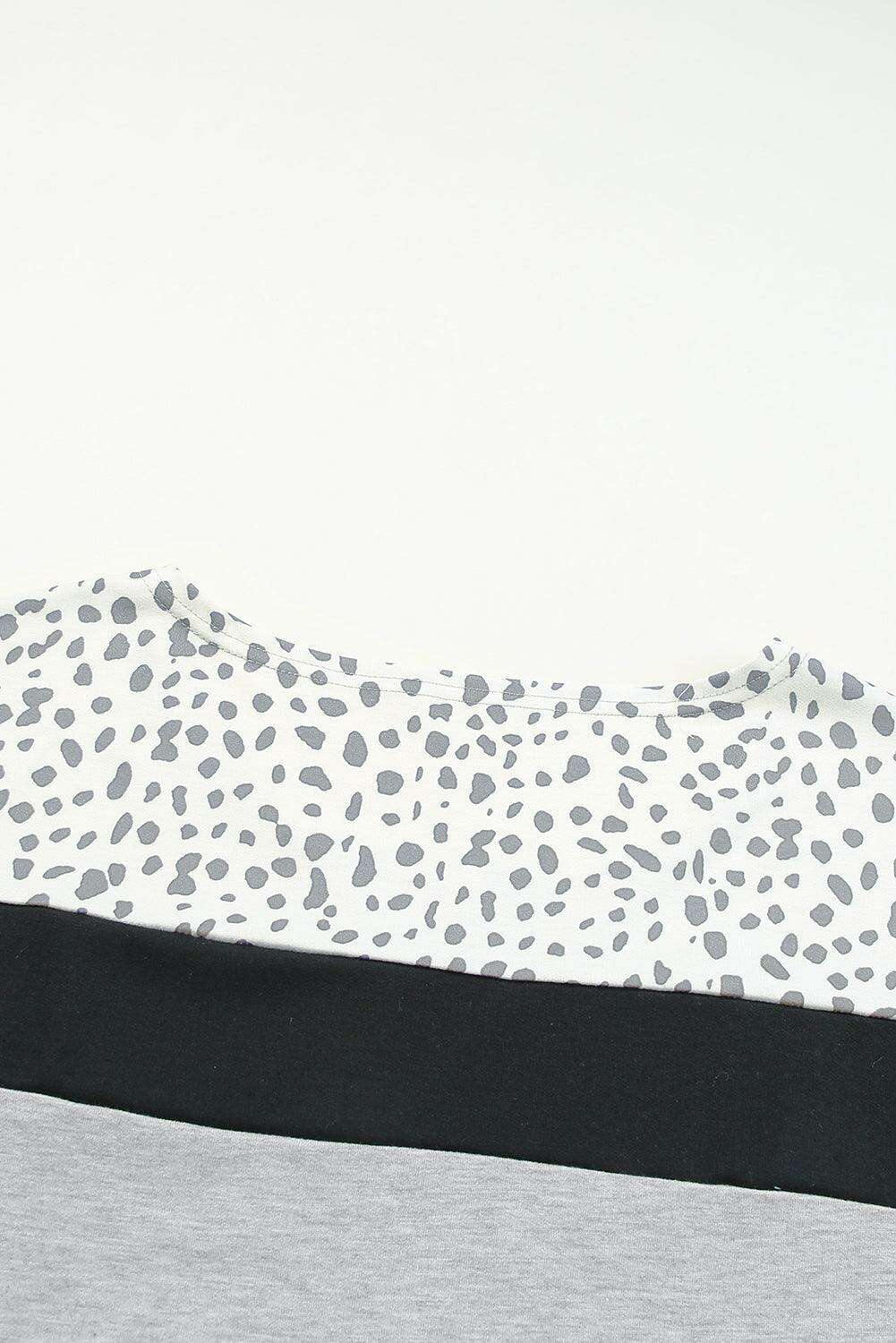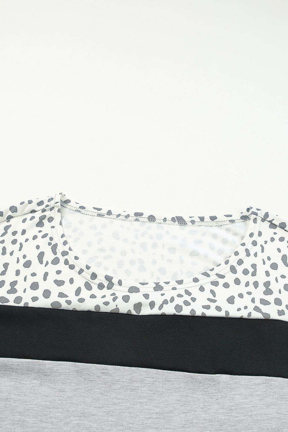 그레이 레오파드 컬러블록 패치워크 풀오버 및 반바지 세트