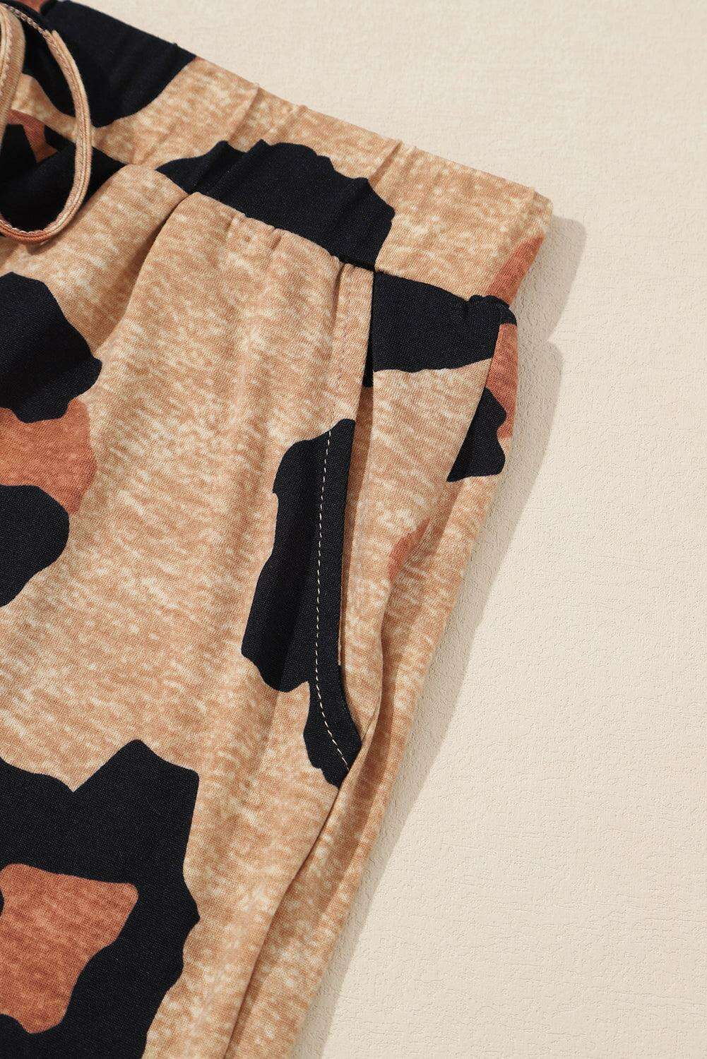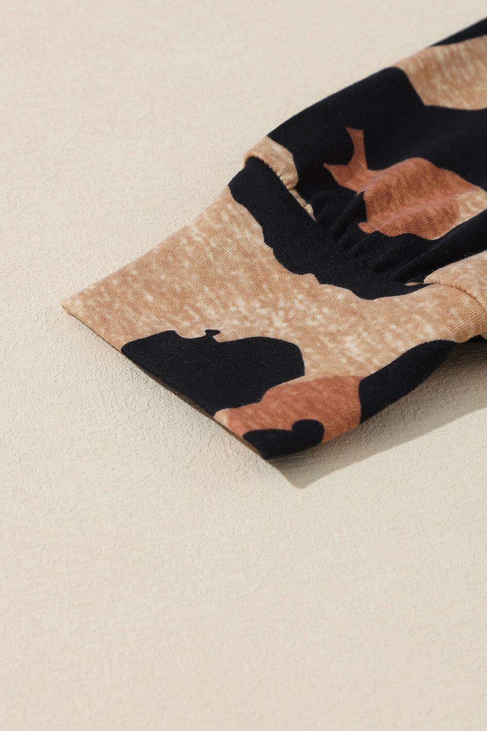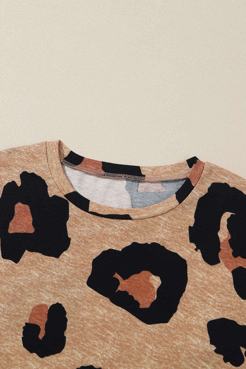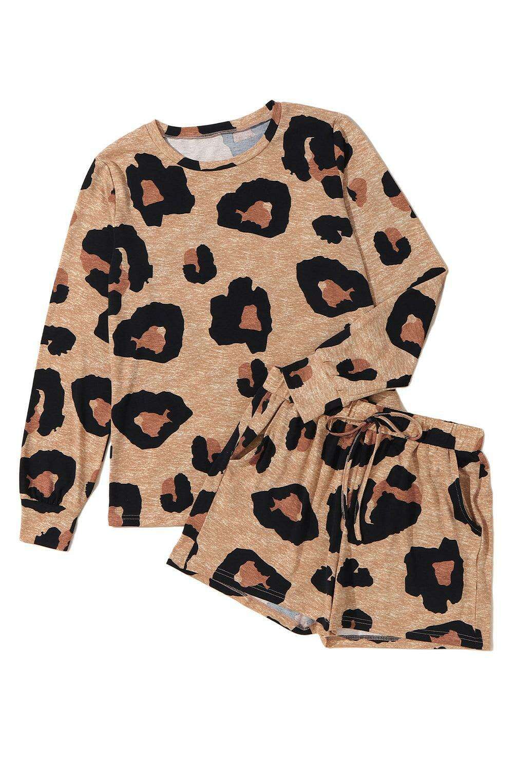 레오파드 동물 프린트 긴 소매 풀오버 및 반바지 캐주얼 의상