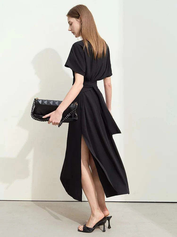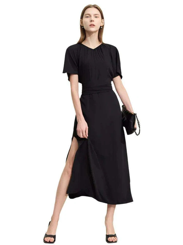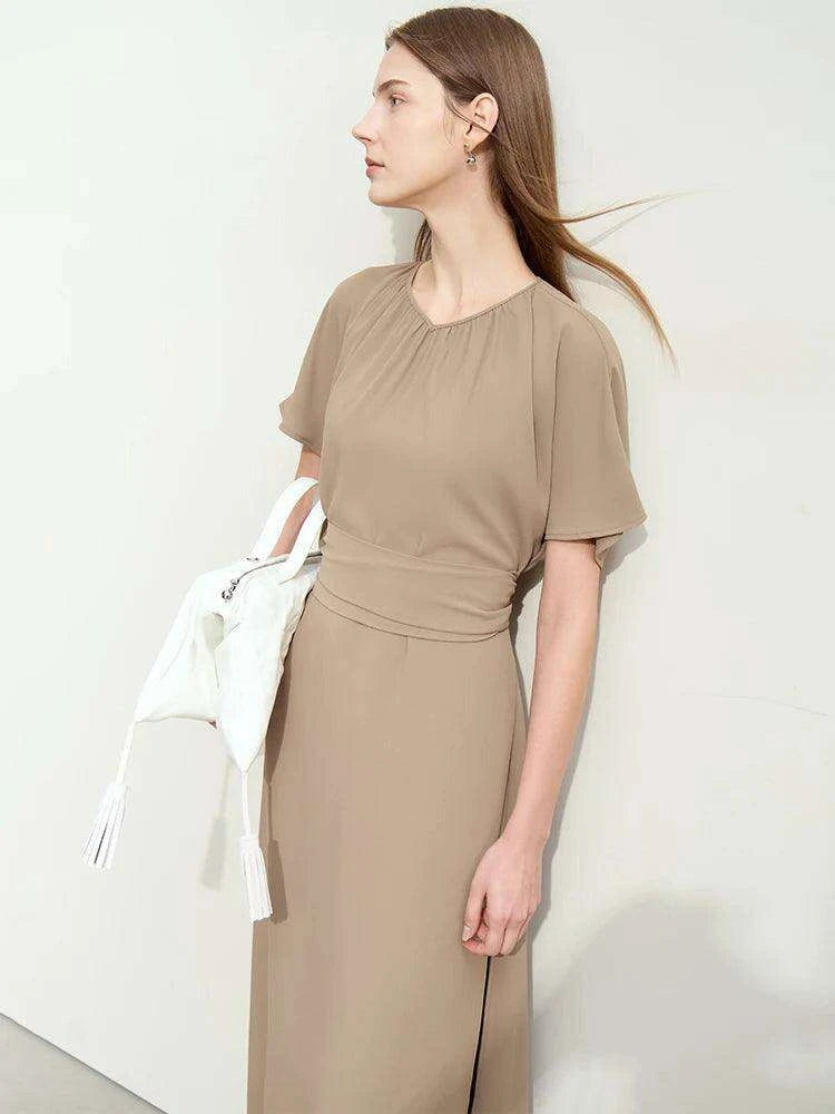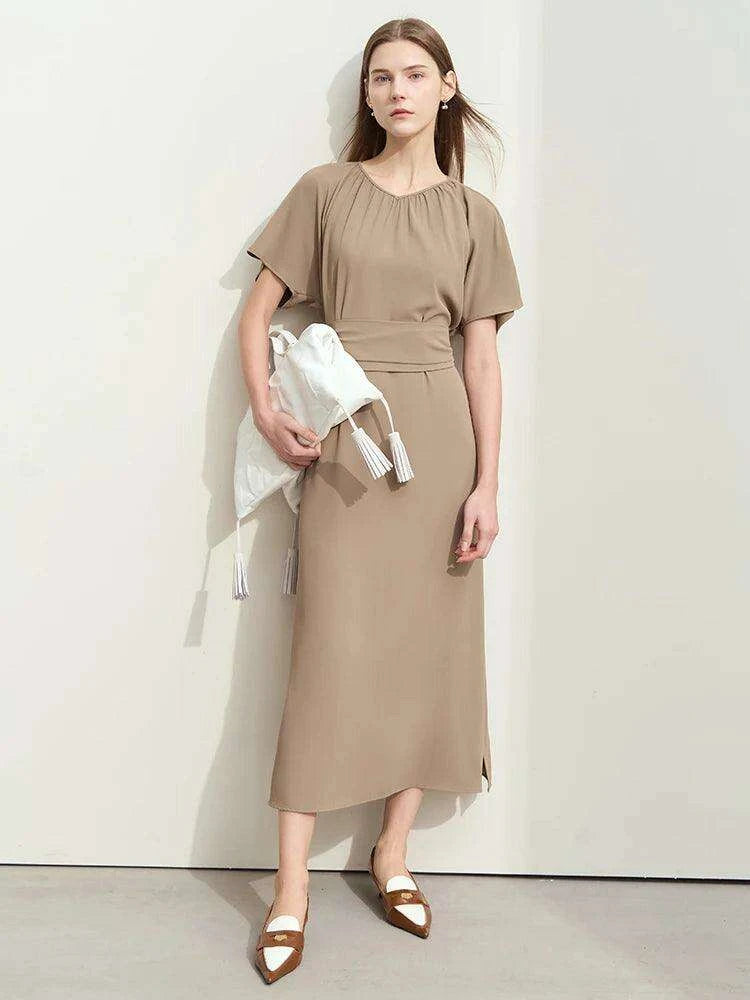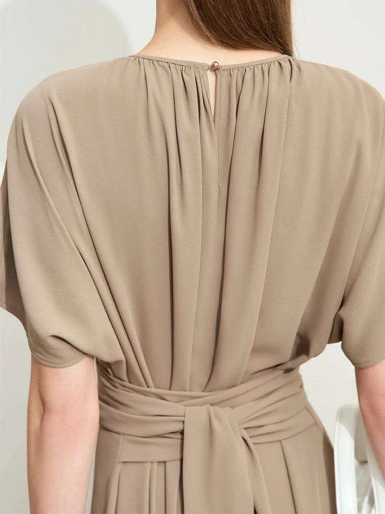 Minimalism Summer Elegant V-neck Lace-up Pleated Dress for Women