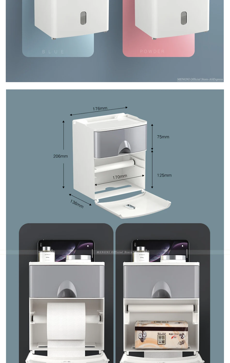 MENGNI 고품질 화장지 홀더 방수 티슈 보관함 벽 마운트 화장실 롤 주최자 욕실 액세서리 세트