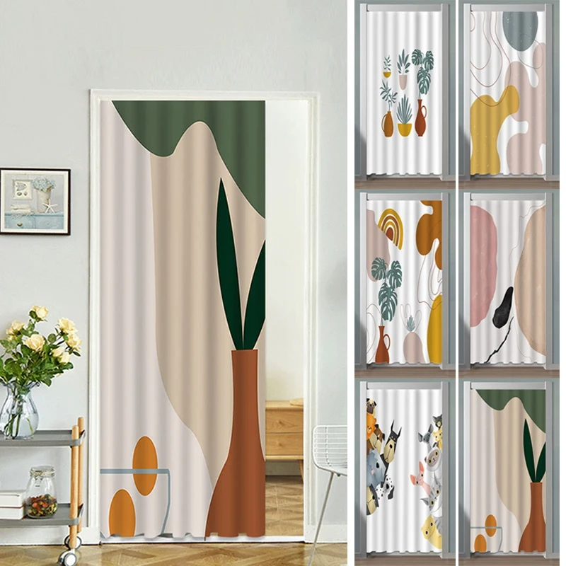 북유럽 문 커튼 침실 캐비닛 용 펀치없는 교수형 커튼 방진 커튼 인쇄 Noren INS 주방 파티션