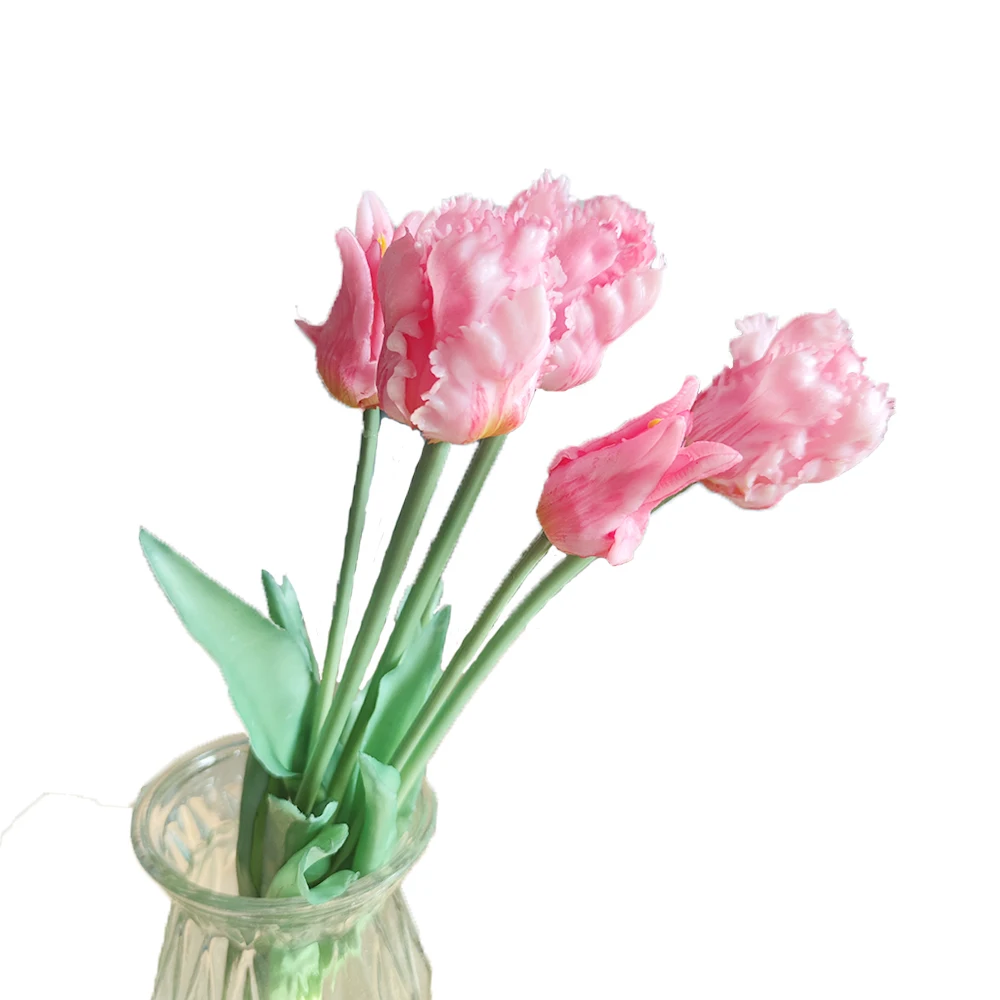 5Pcs 앵무새 튤립 인공 꽃 실리콘 리얼 터치 꽃다발 45CM 럭셔리 식물원 홈 장식 거실 데코 플로레스 가짜 식물
